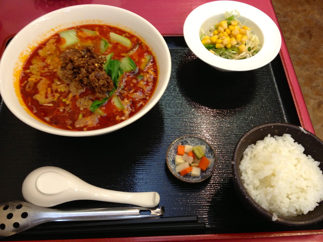 今日は食べたのは、定番の担々麺セット。相変わらず旨辛いです。