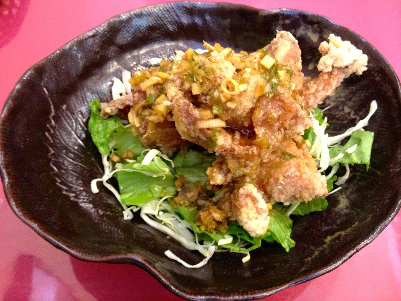 パリパリの唐揚げにネギなどの入ったソースがかかり美味しかったです。