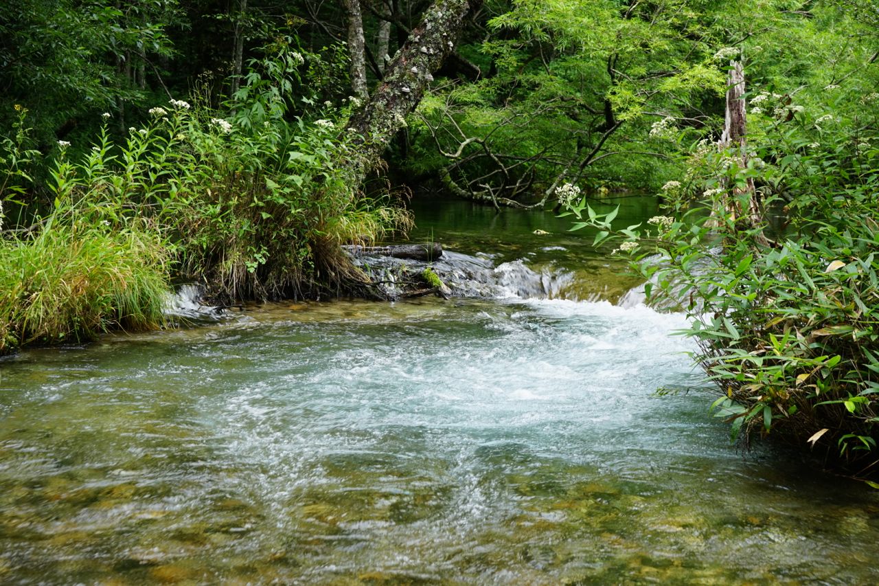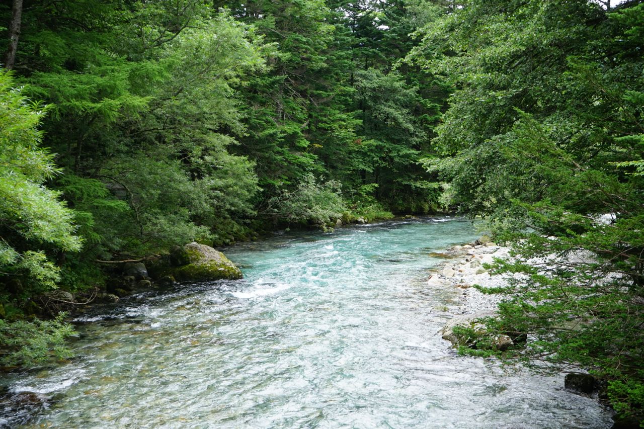 ここから下流にある大正池へは片道40分ほどかかるようで、