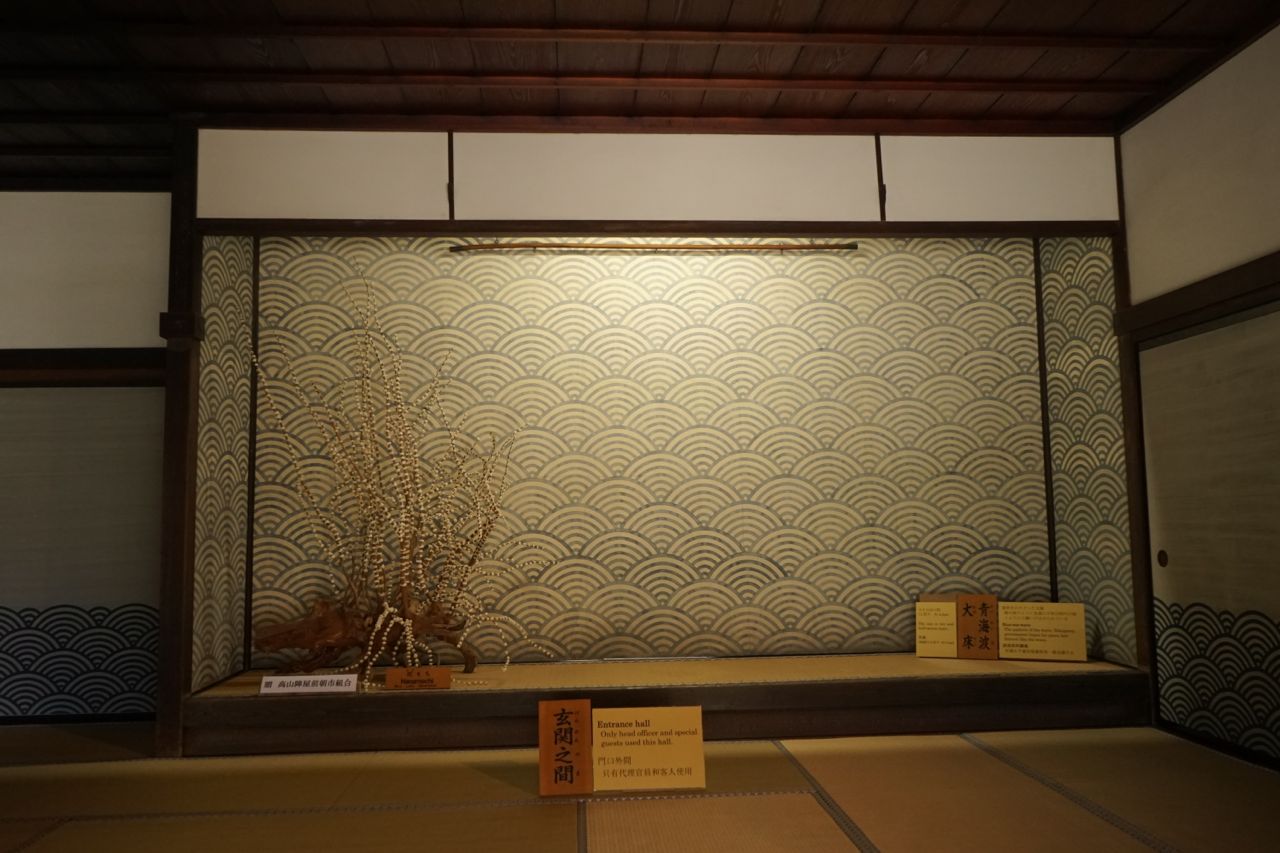入ったところにあるのが玄関之間。壁の波模様が目に留まります。