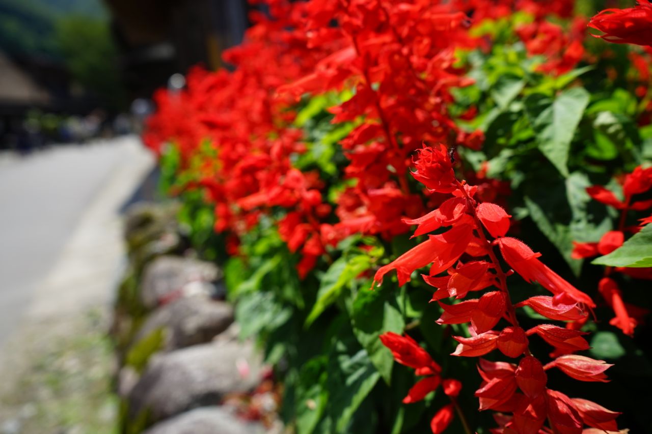 集落に咲くサルビア。これって舐める蜜の味…でしたっけ。