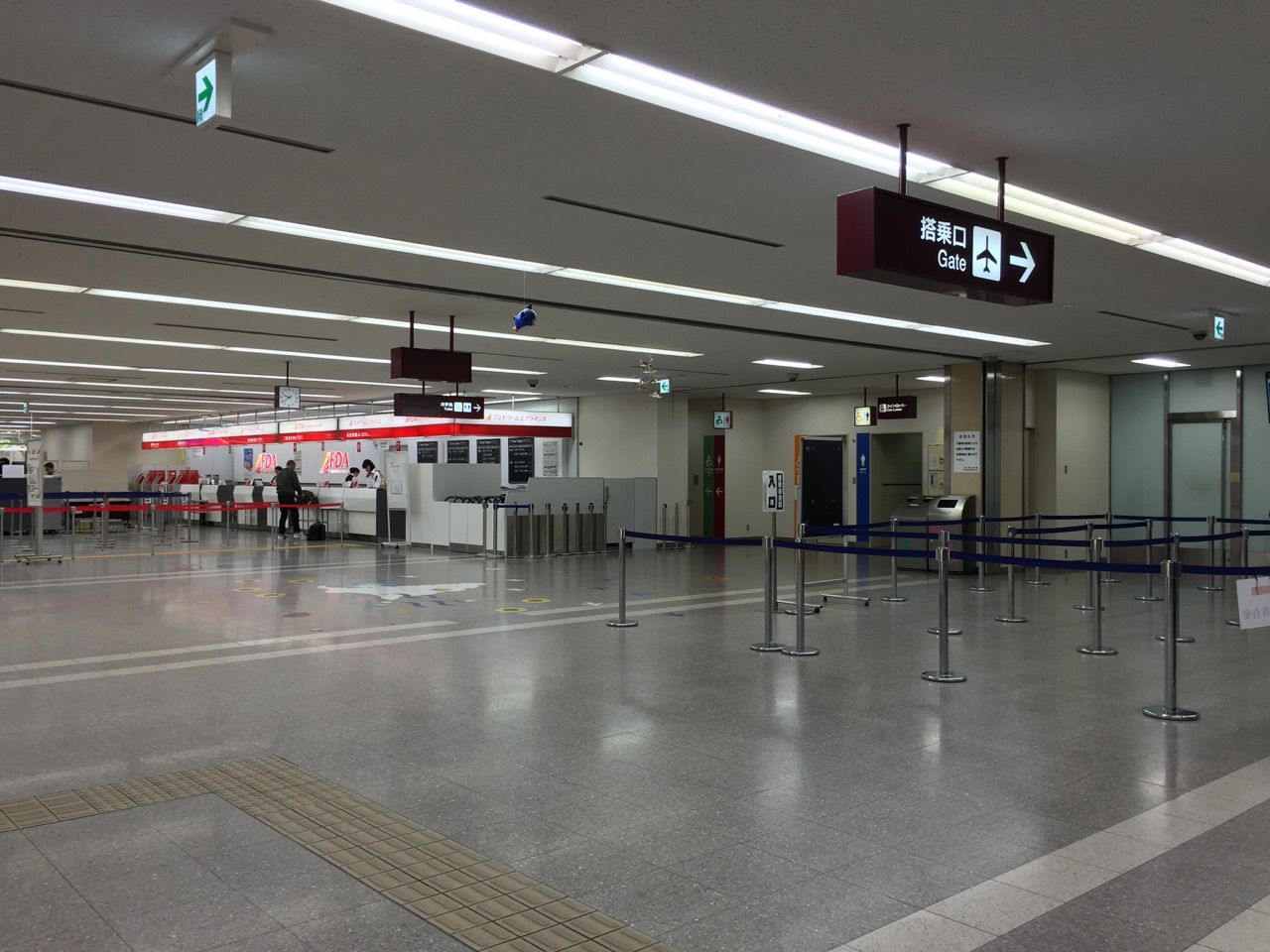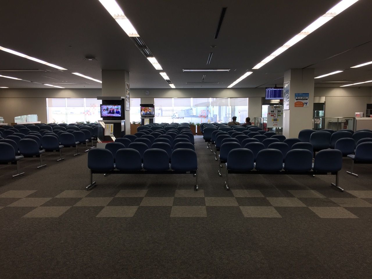 出発ロビー。県営名古屋空港が昔は国際空港だったことが