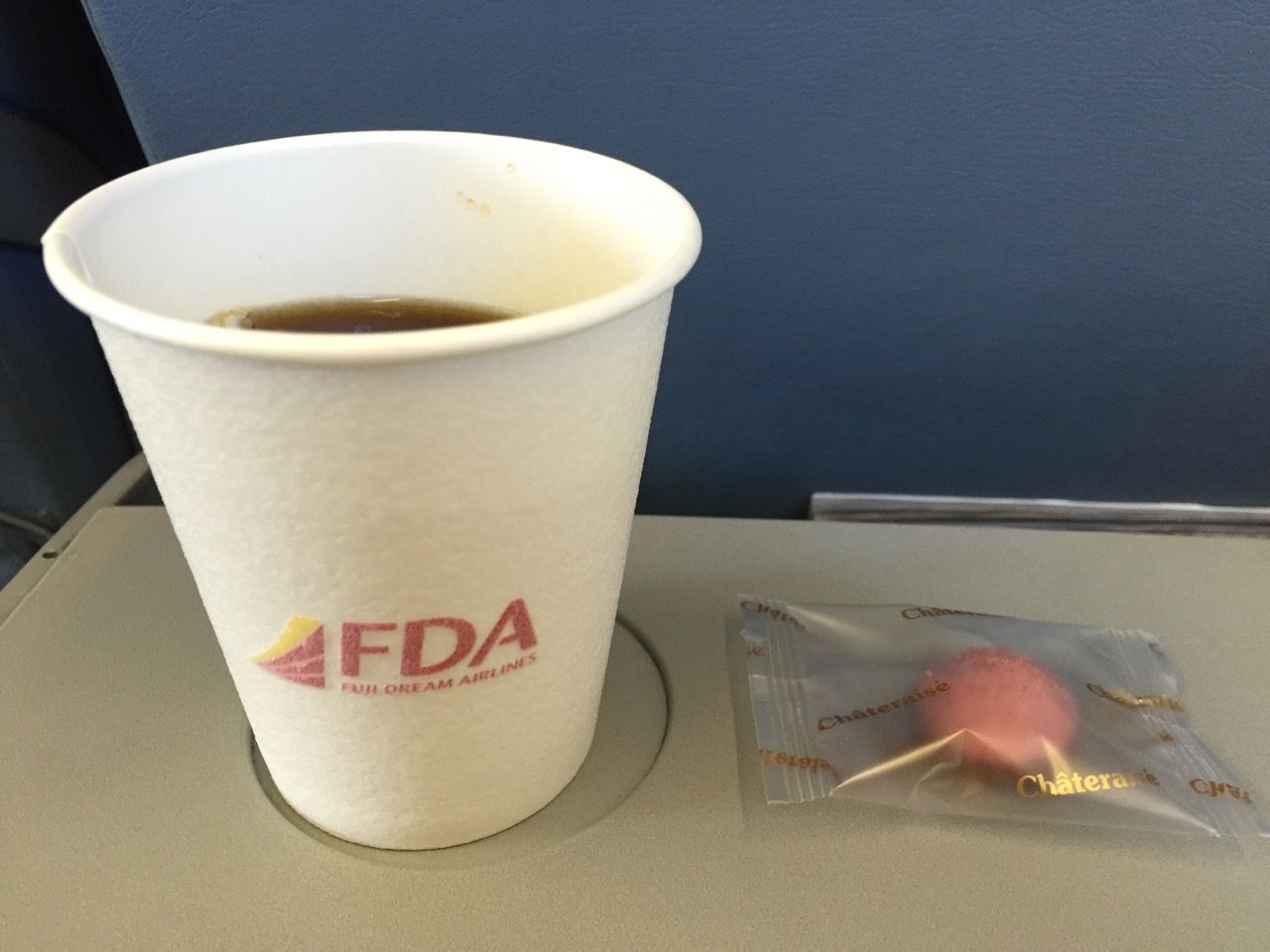 機内ではコーヒーとシャトレーゼのチョコといただきました。