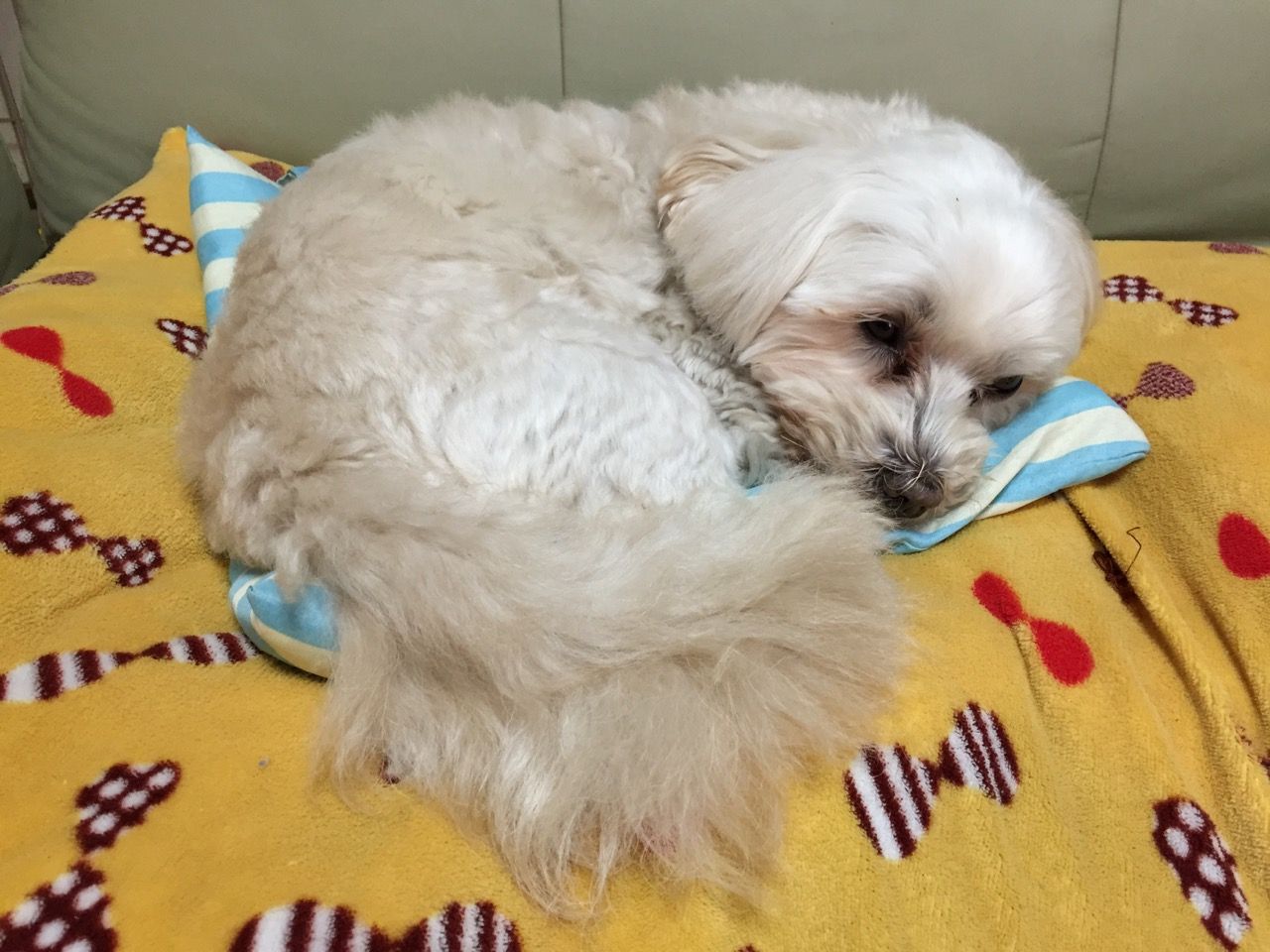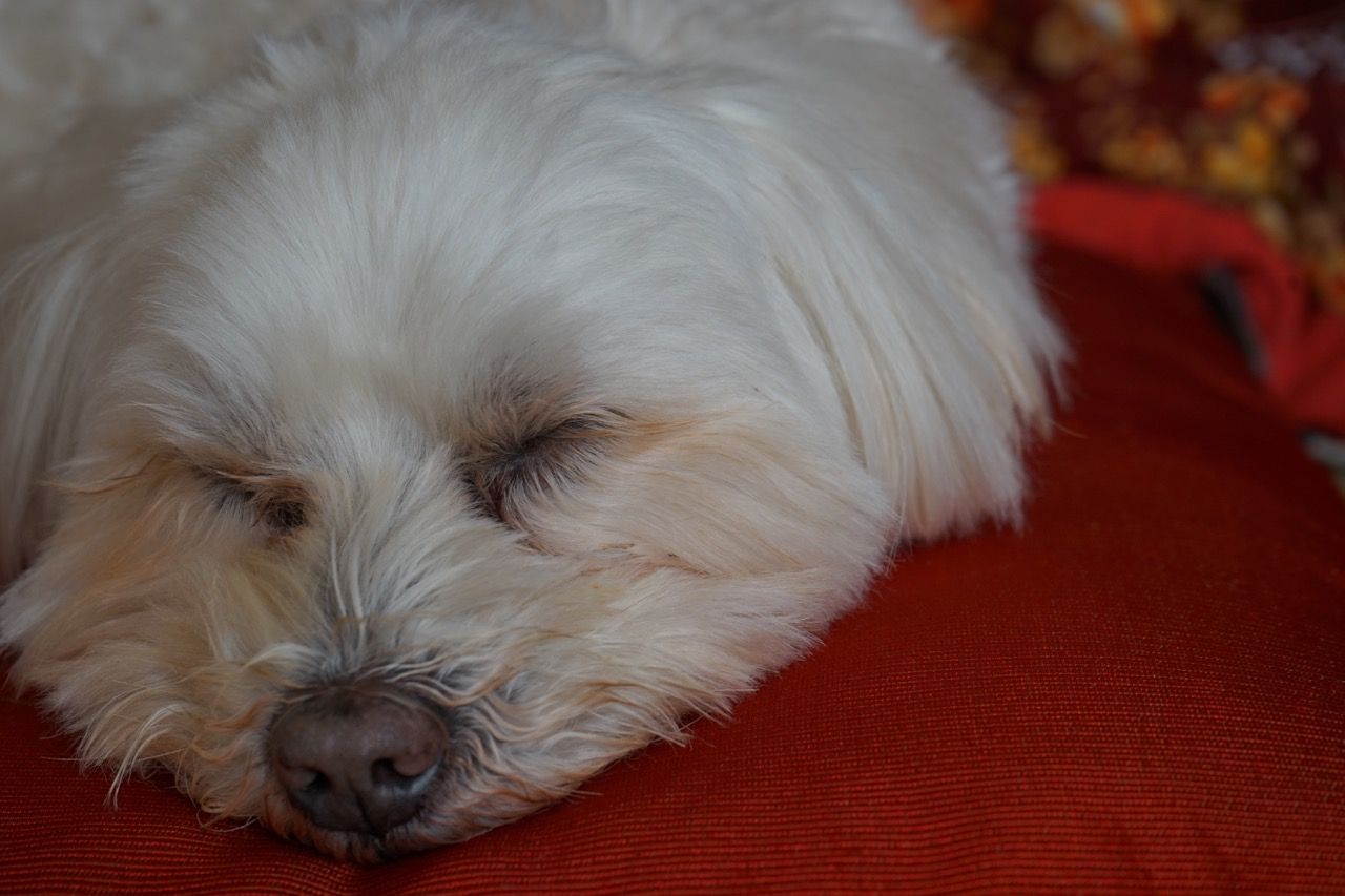ボロいソファの上にある自分のクッションの上でよく寝ているので、