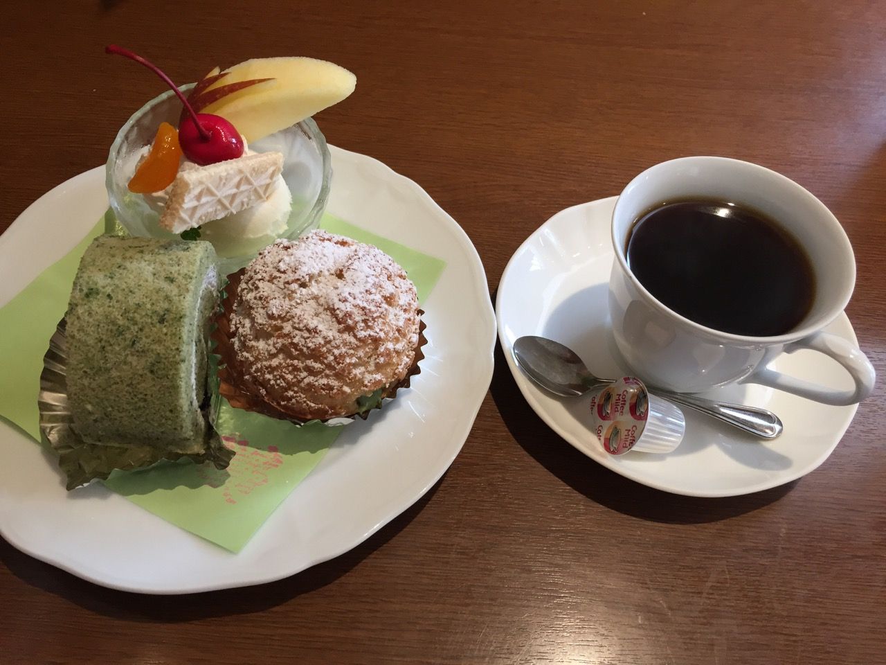 土日限定のよもぎロールケーキとよもぎシューも合わせて。