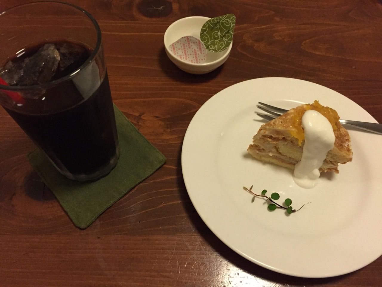 そしてデザートには甘夏のケーキとアイスコーヒー。