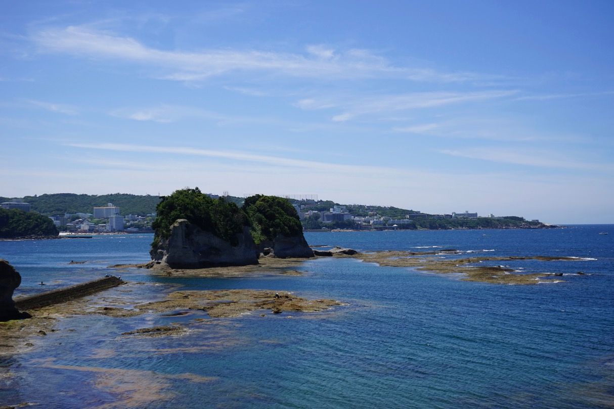 白浜のシンボル・円月島と温泉街を