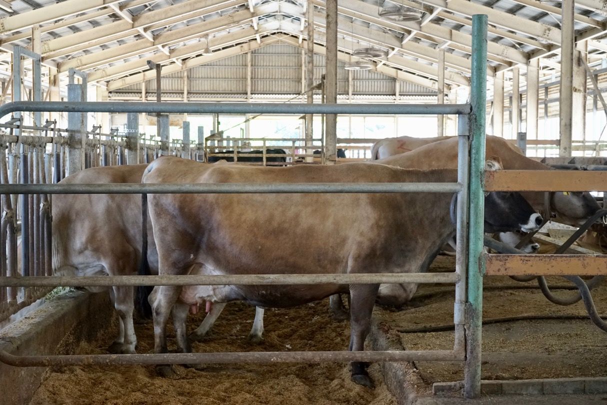 さっそく育成牛舎へ行くと牛舎には沢山の牛。