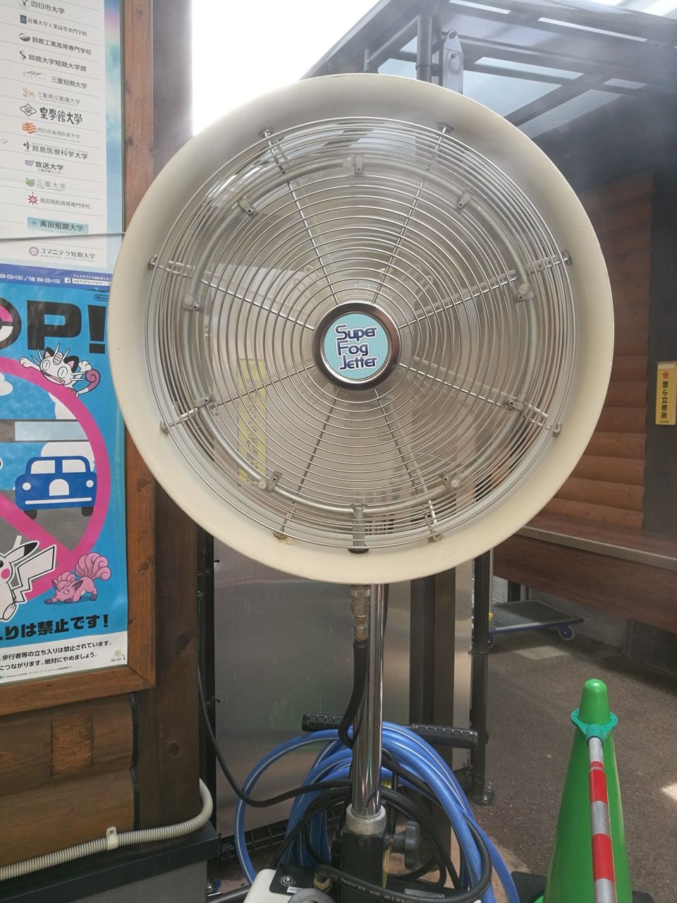 冷気が出ている大きな扇風機。