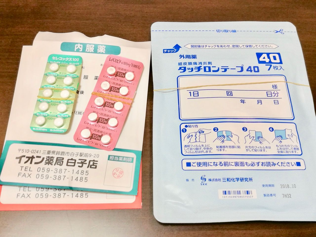 湿布薬と痛み止めを頂いて来ました。