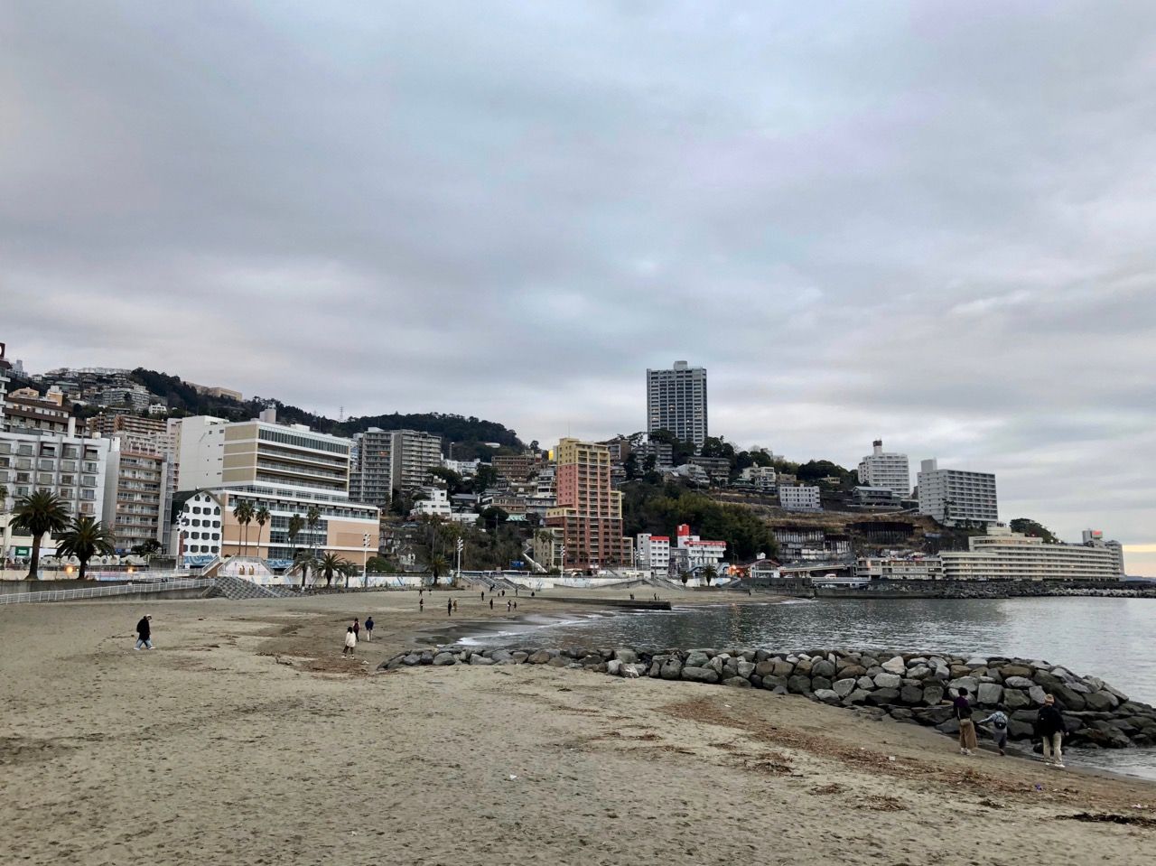 熱海の砂浜からの写真、ほんと白浜に似てますね!