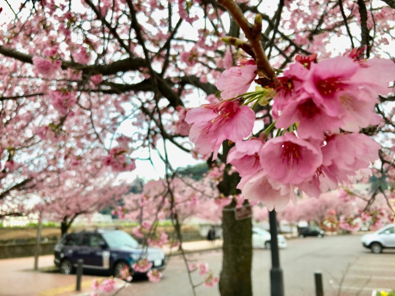 海沿いの親水公園には早咲きの桜が。