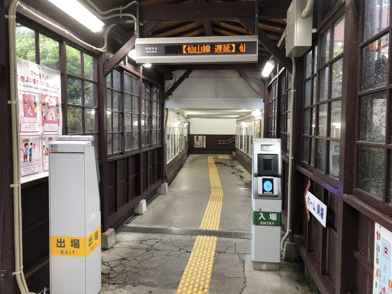 しばし山寺駅で電車来るまで雨宿り、、、
