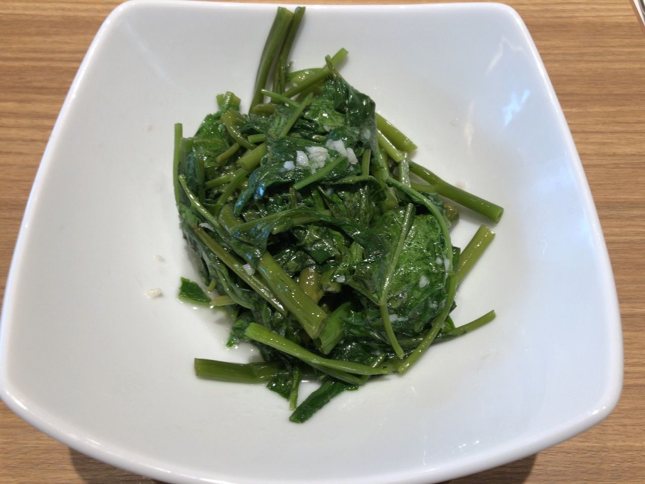 日本では珍しい空芯菜炒め。