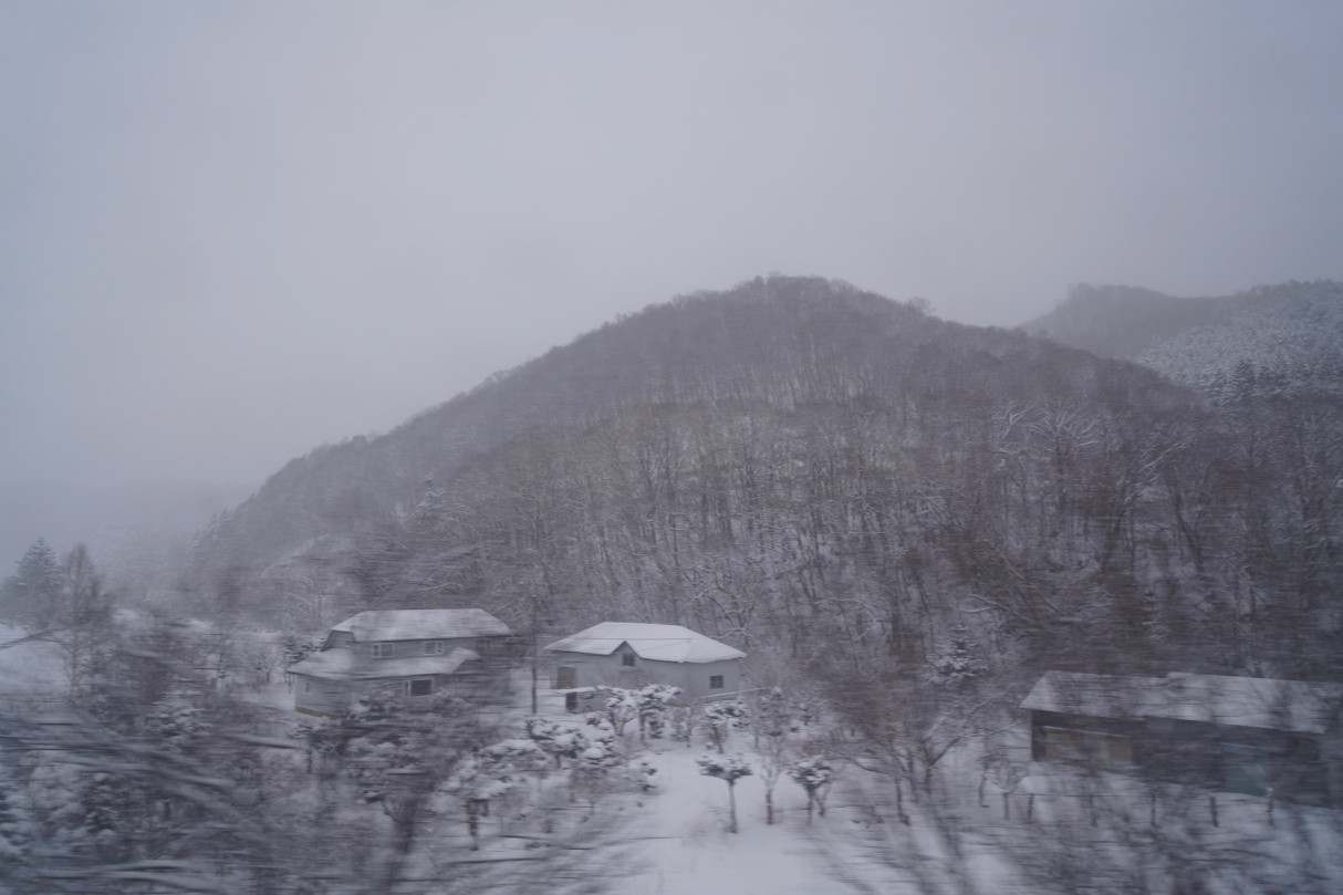 長万部を過ぎると、雪山の中を汽車が