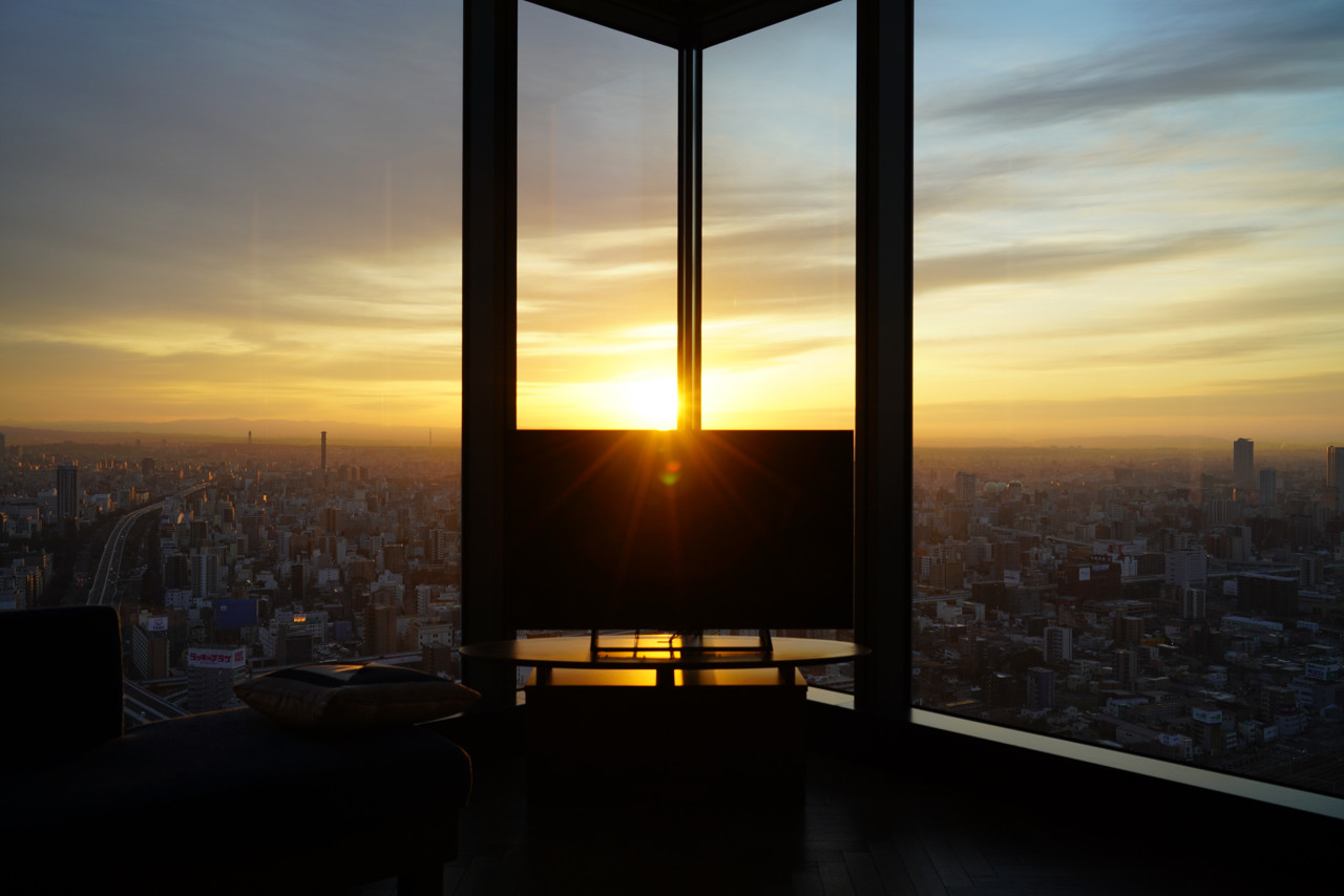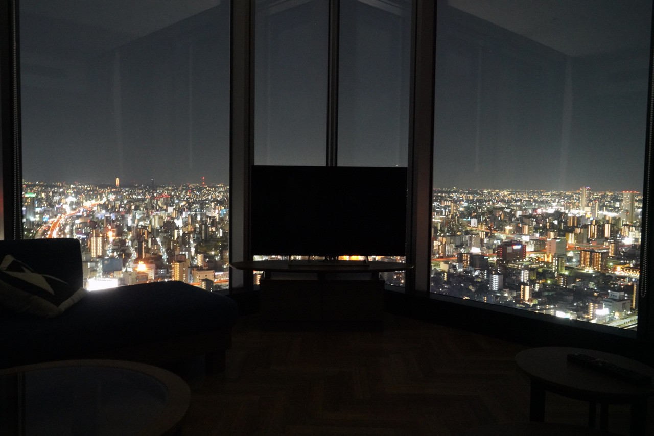 ホテルの部屋から夜景を眺める贅沢さ。