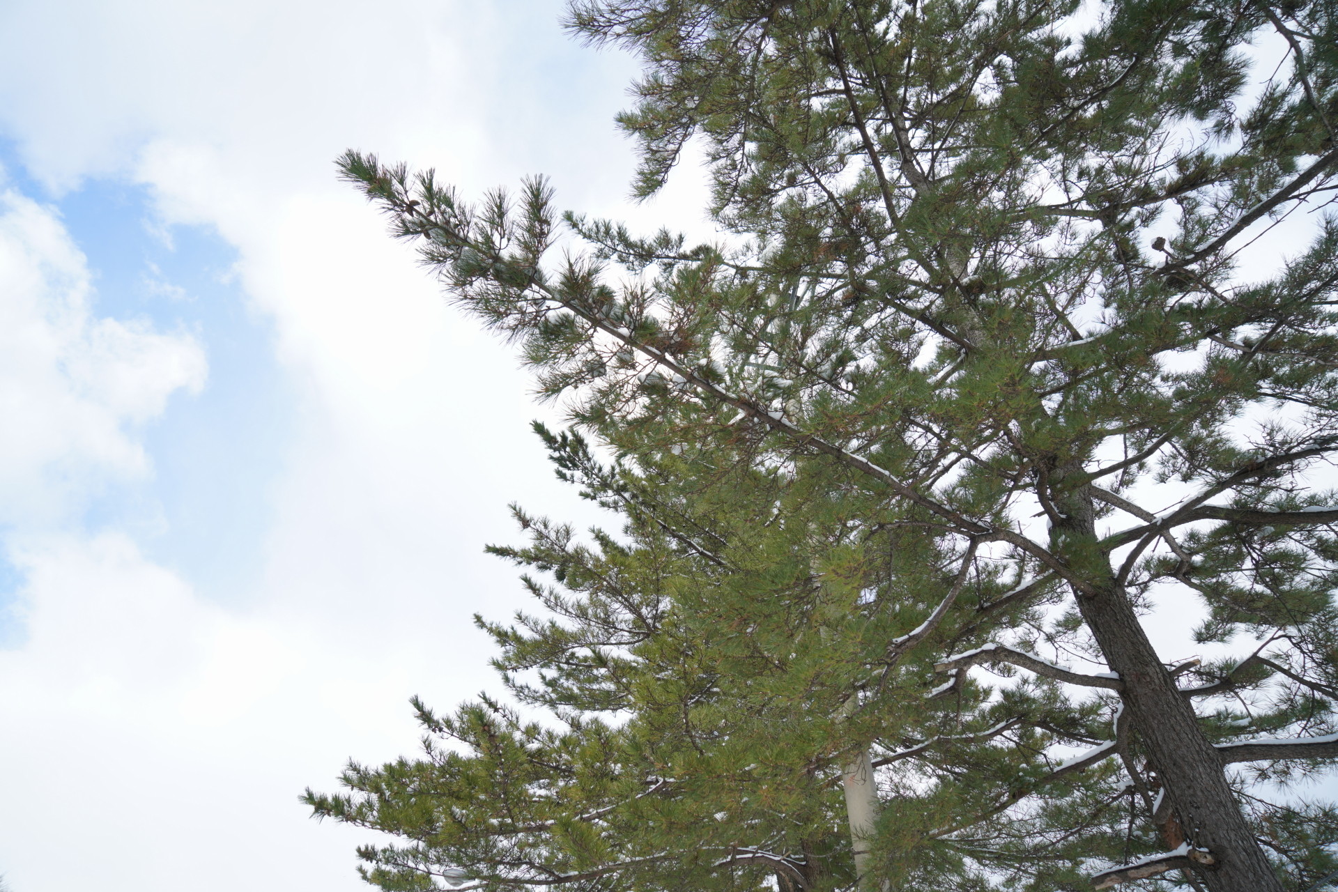 細い松の枝にも雪が積もっており、