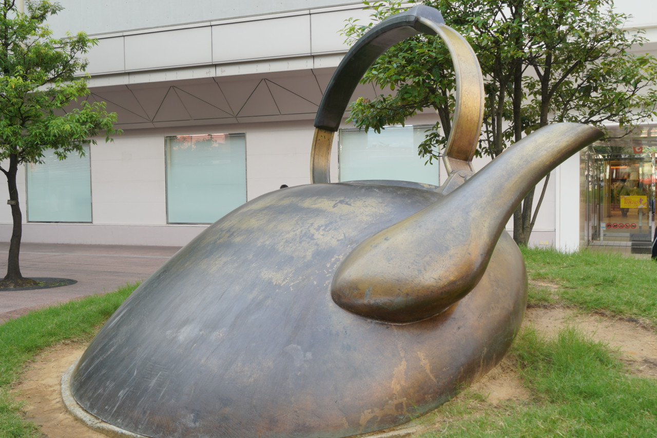 歩いていると眼の前に大きなヤカンが。
