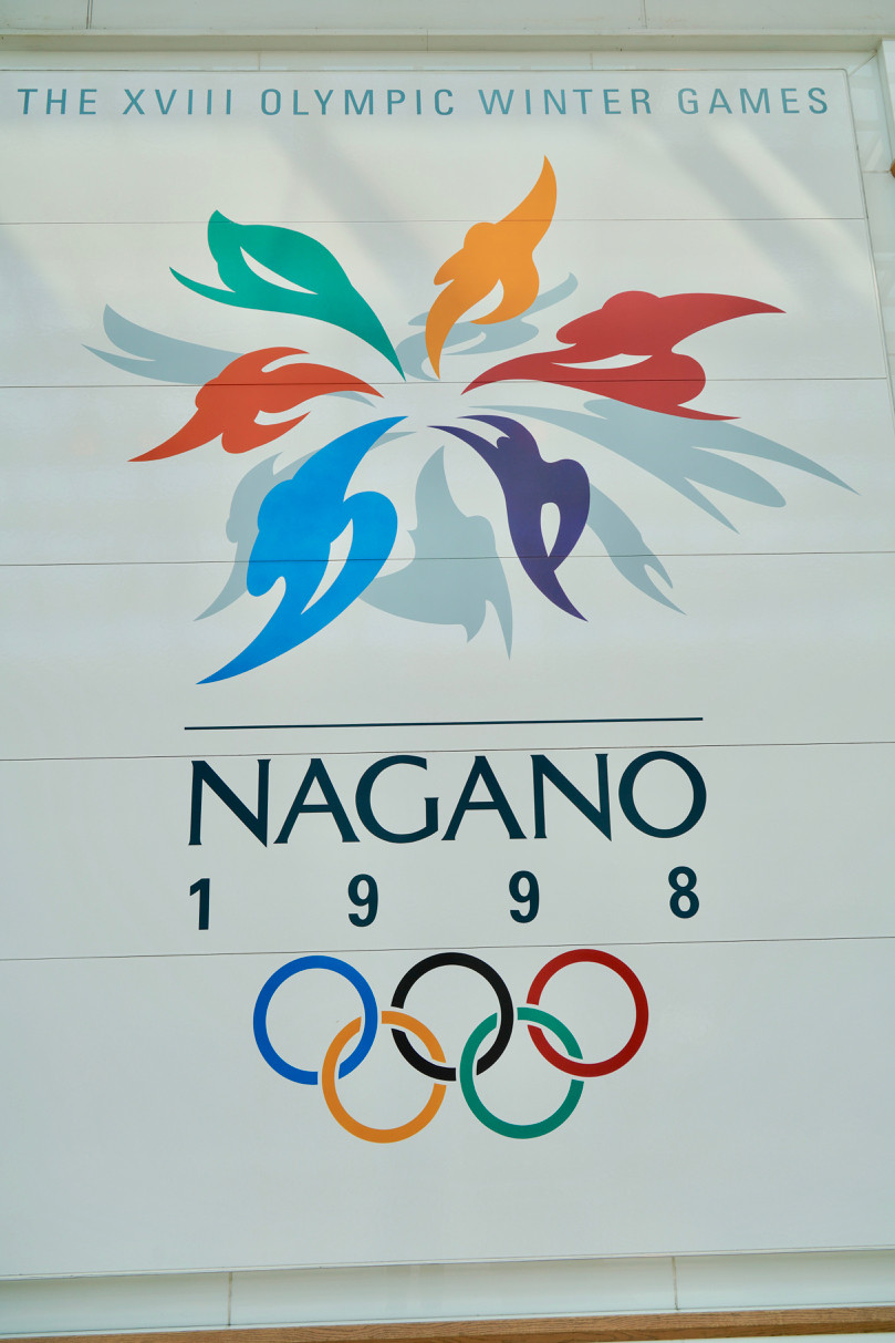 駅にあった長野オリンピックの看板。