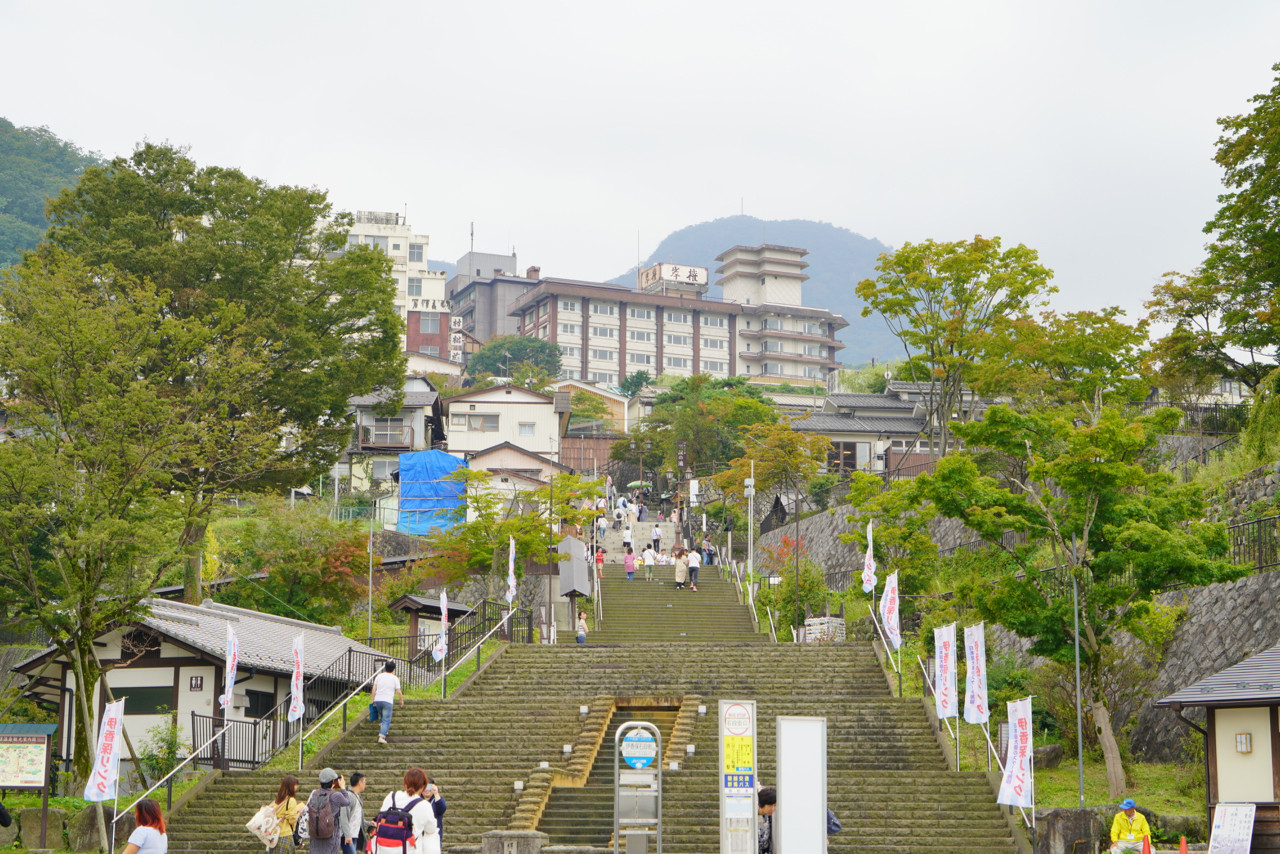 有数の温泉地で、温泉街にある300段を超える