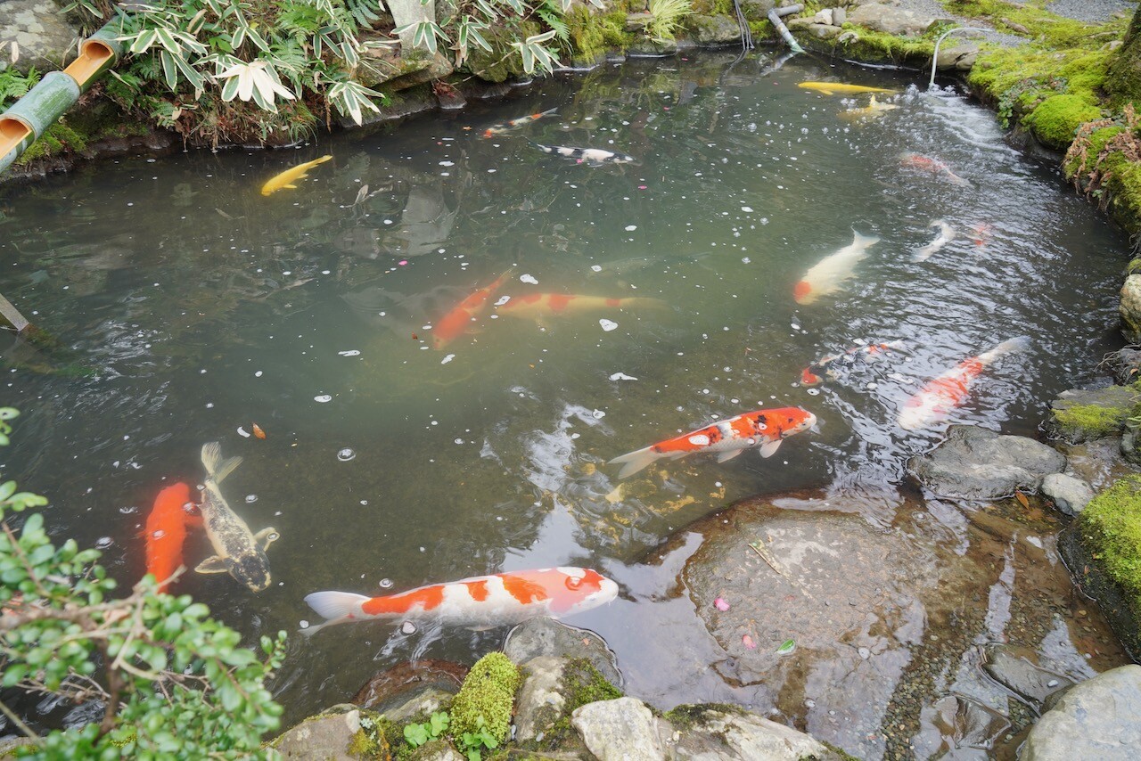 池では鯉が優雅に泳いでいました。