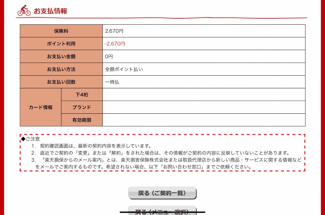 今年は楽天損保に加入しております。
