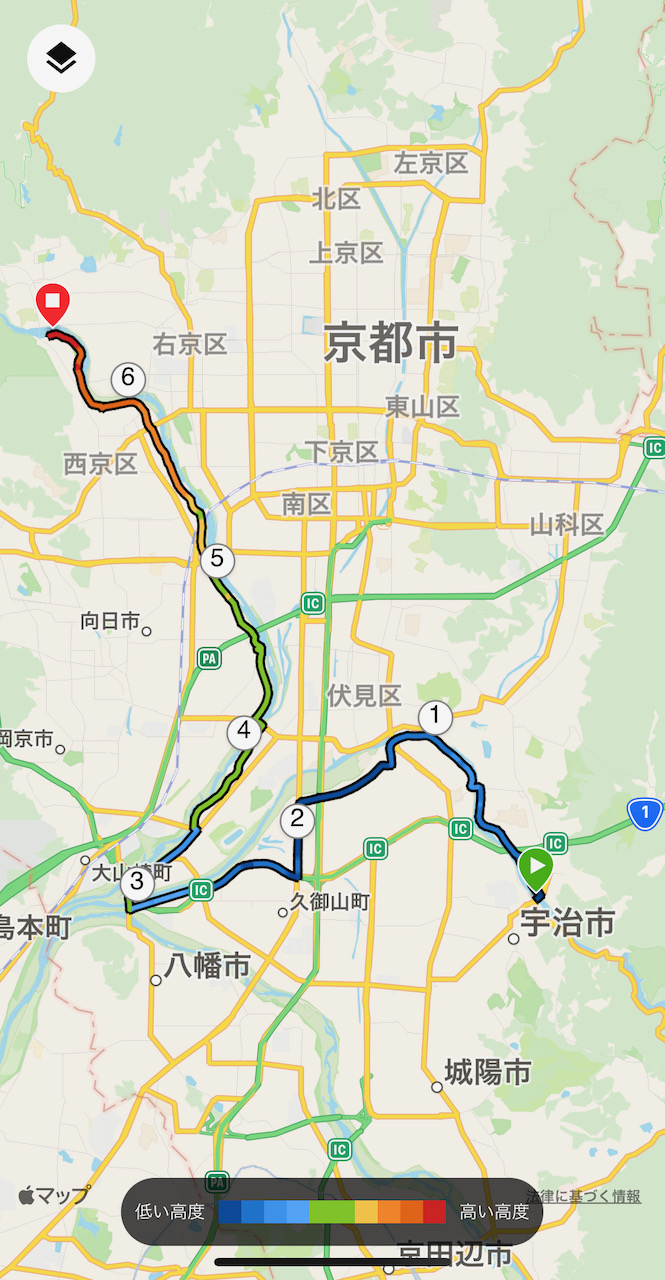 帰路は嵐山から宇治へ直線的に向かう