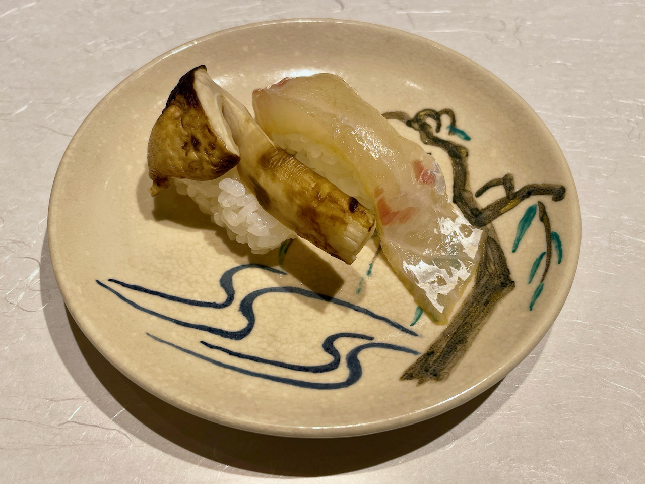 続いては松茸と白身魚の握り。