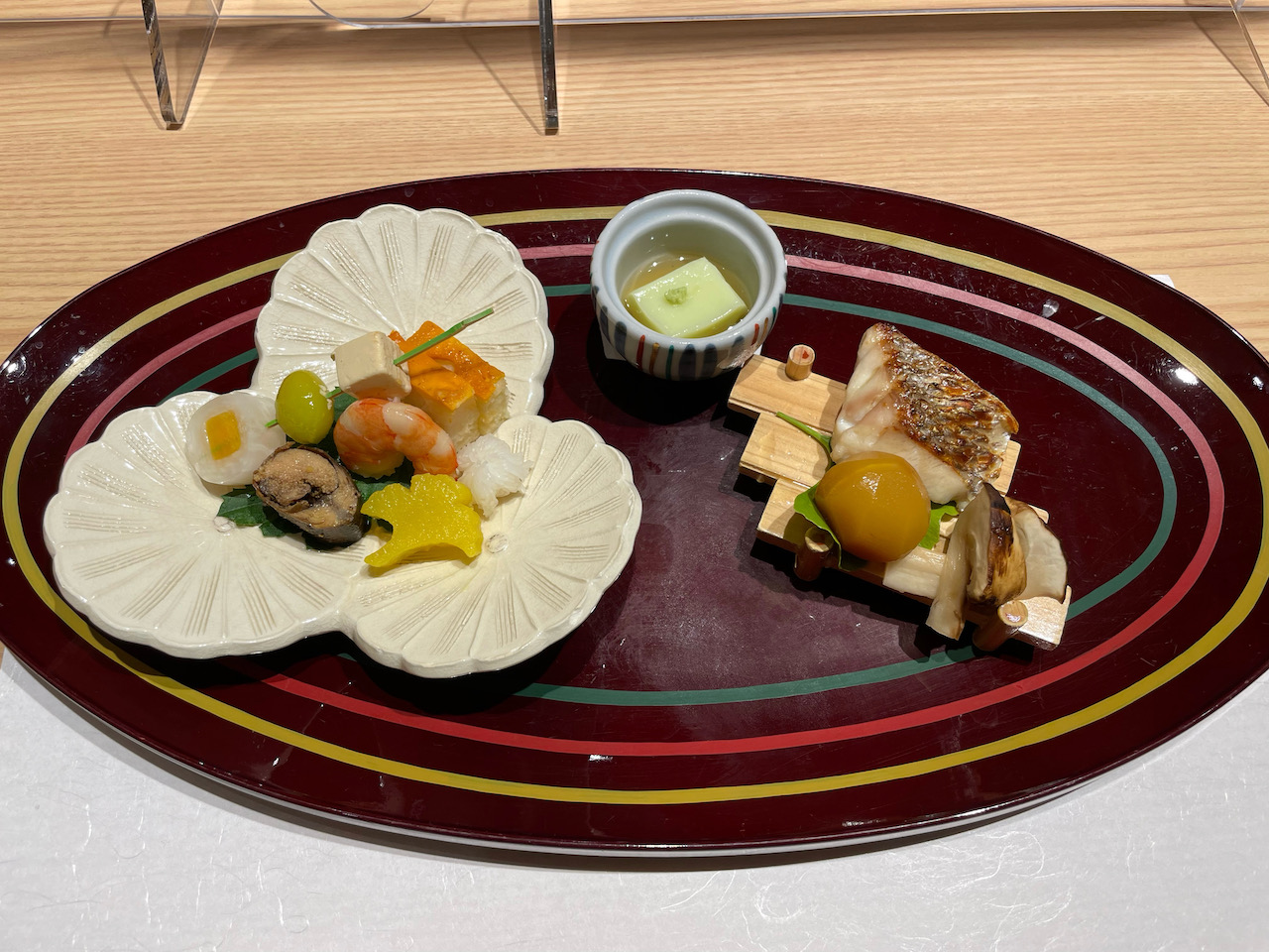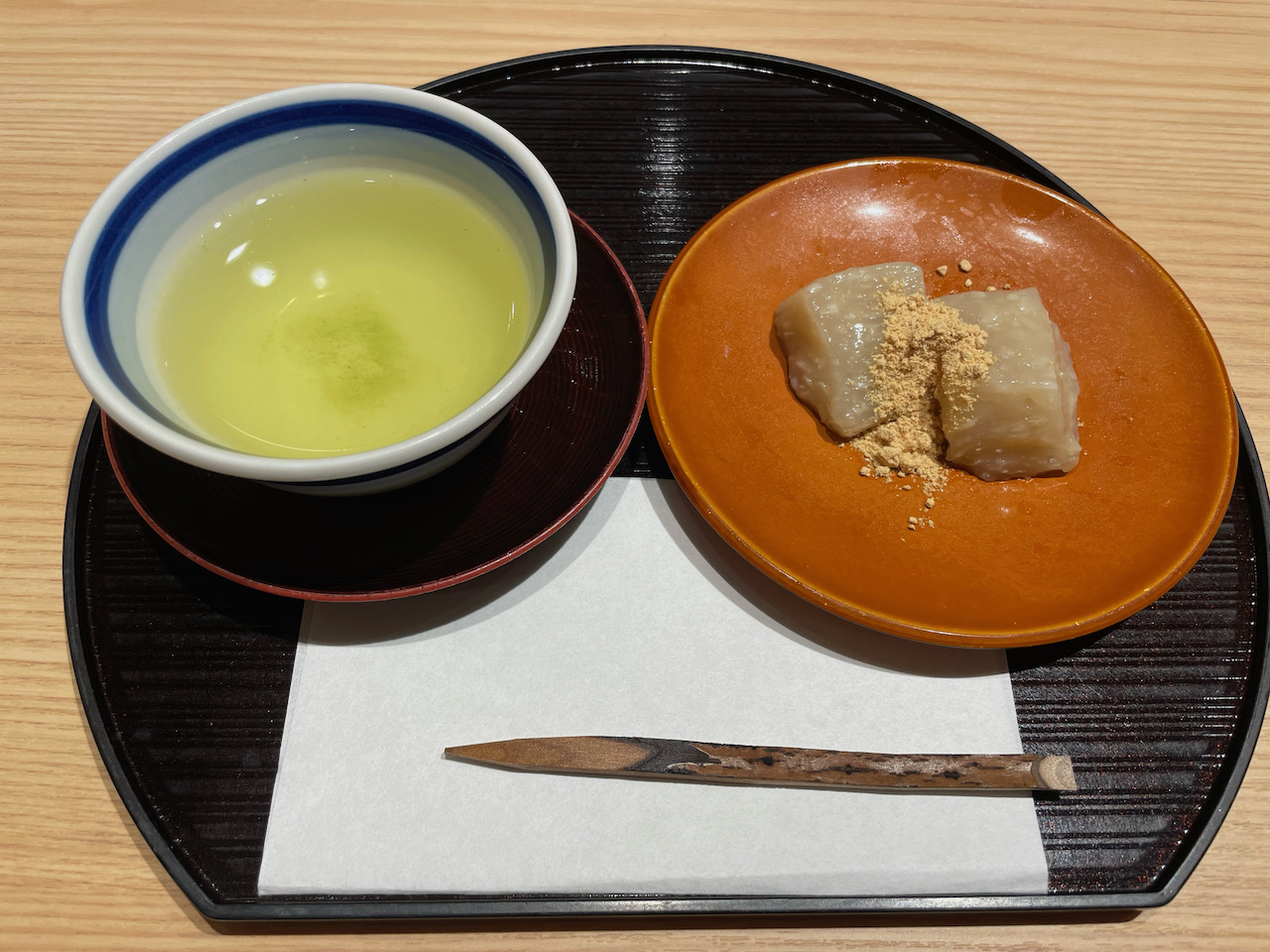 デザートには湯葉のわらび餅。