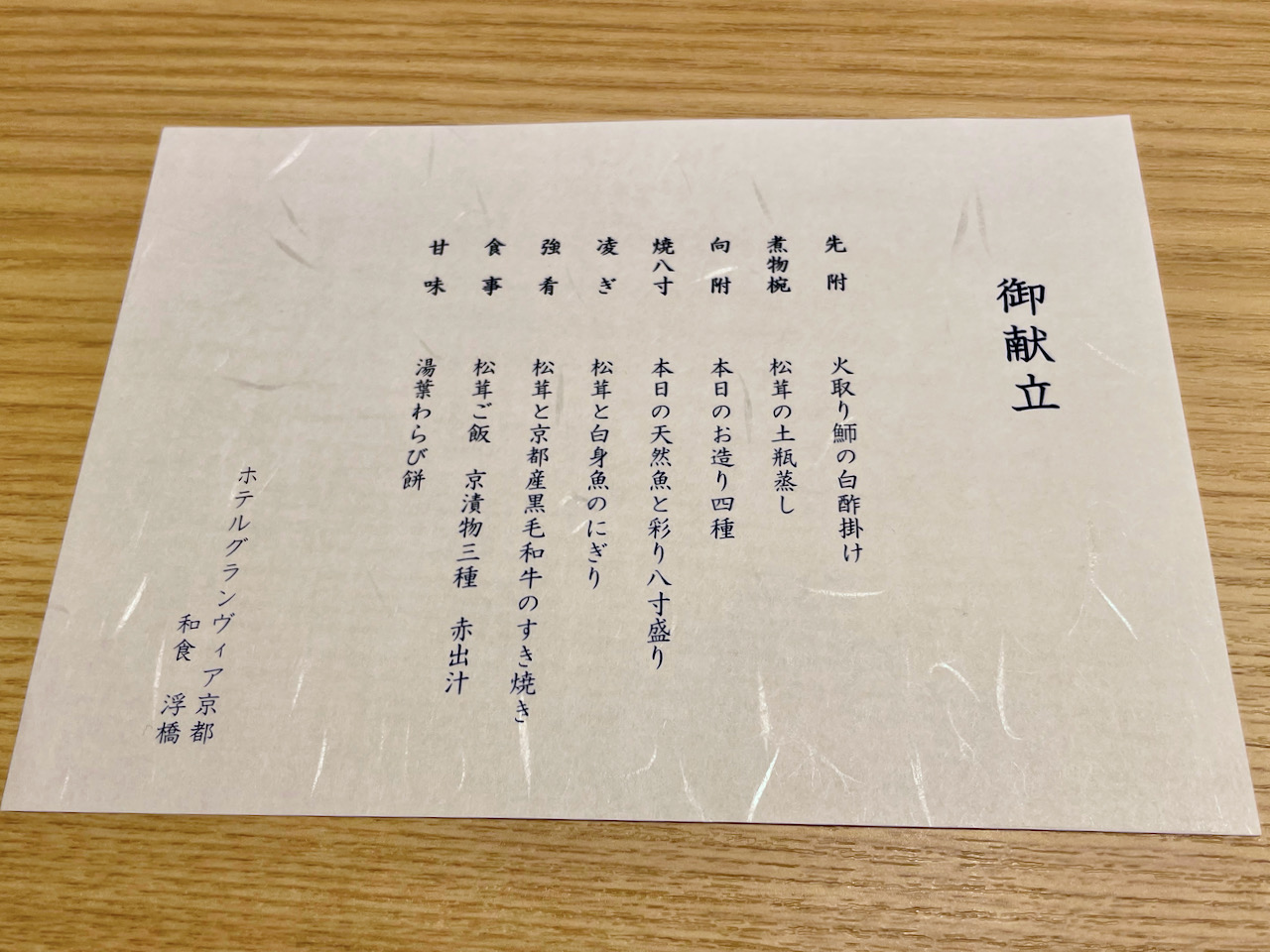 ホテルグランヴィア京都の和食・浮橋。