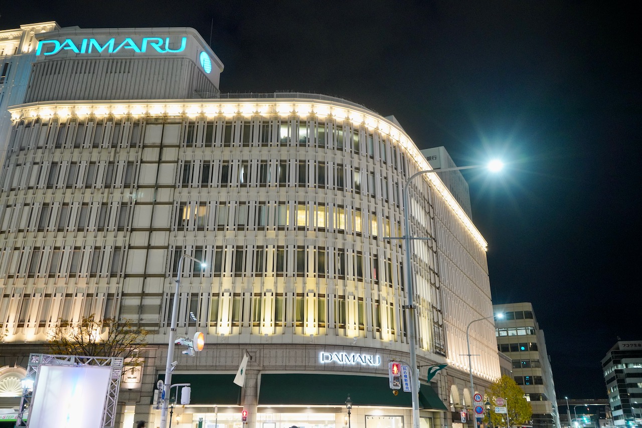 大きな大丸百貨店を下から眺めると、