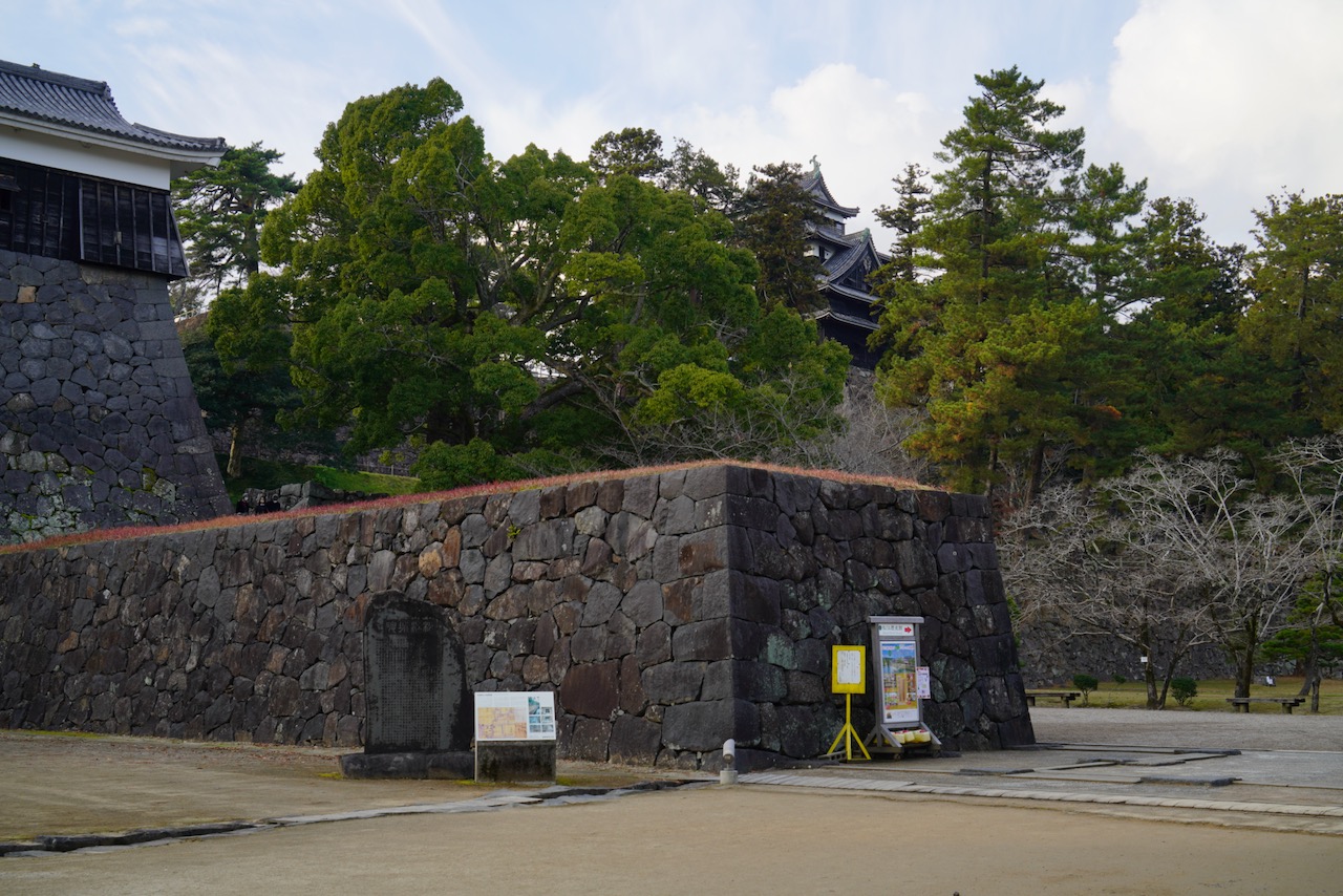 木々の間から黒い天守が見えてきました。