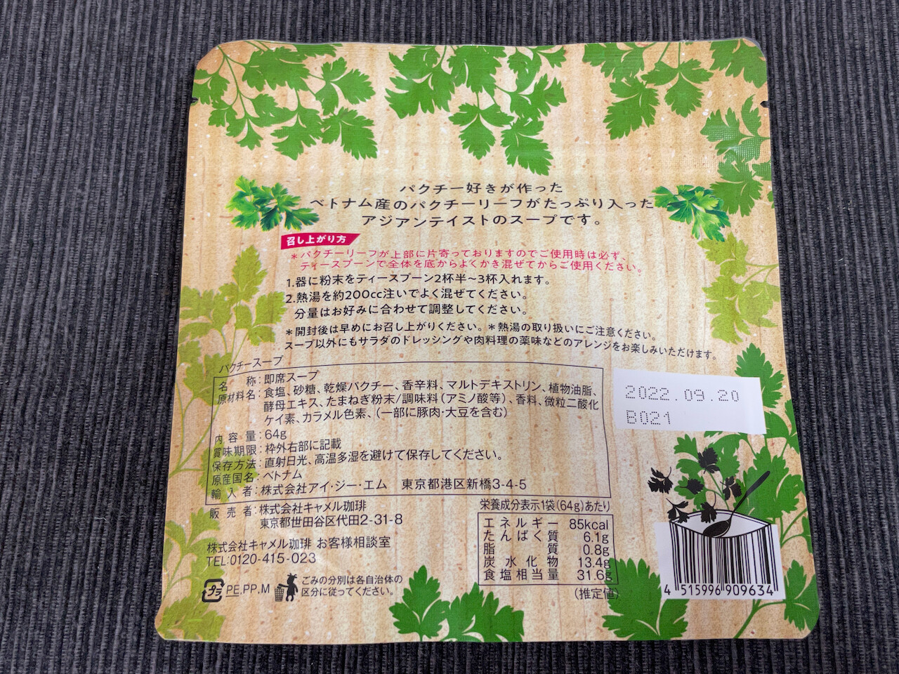パクチースープの開けて香りを嗅ぐと