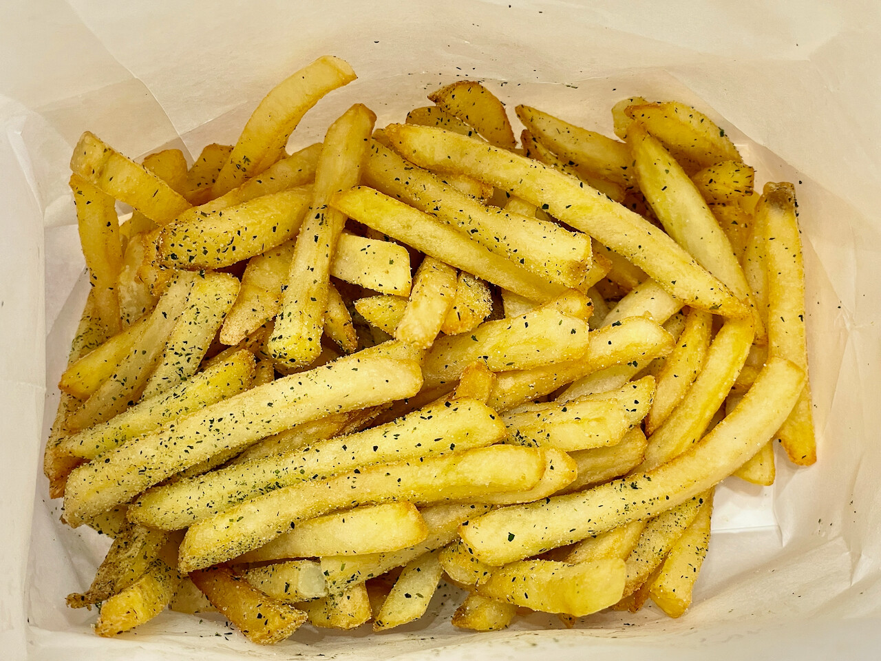 中には揚げたてのポテトが山盛りに。