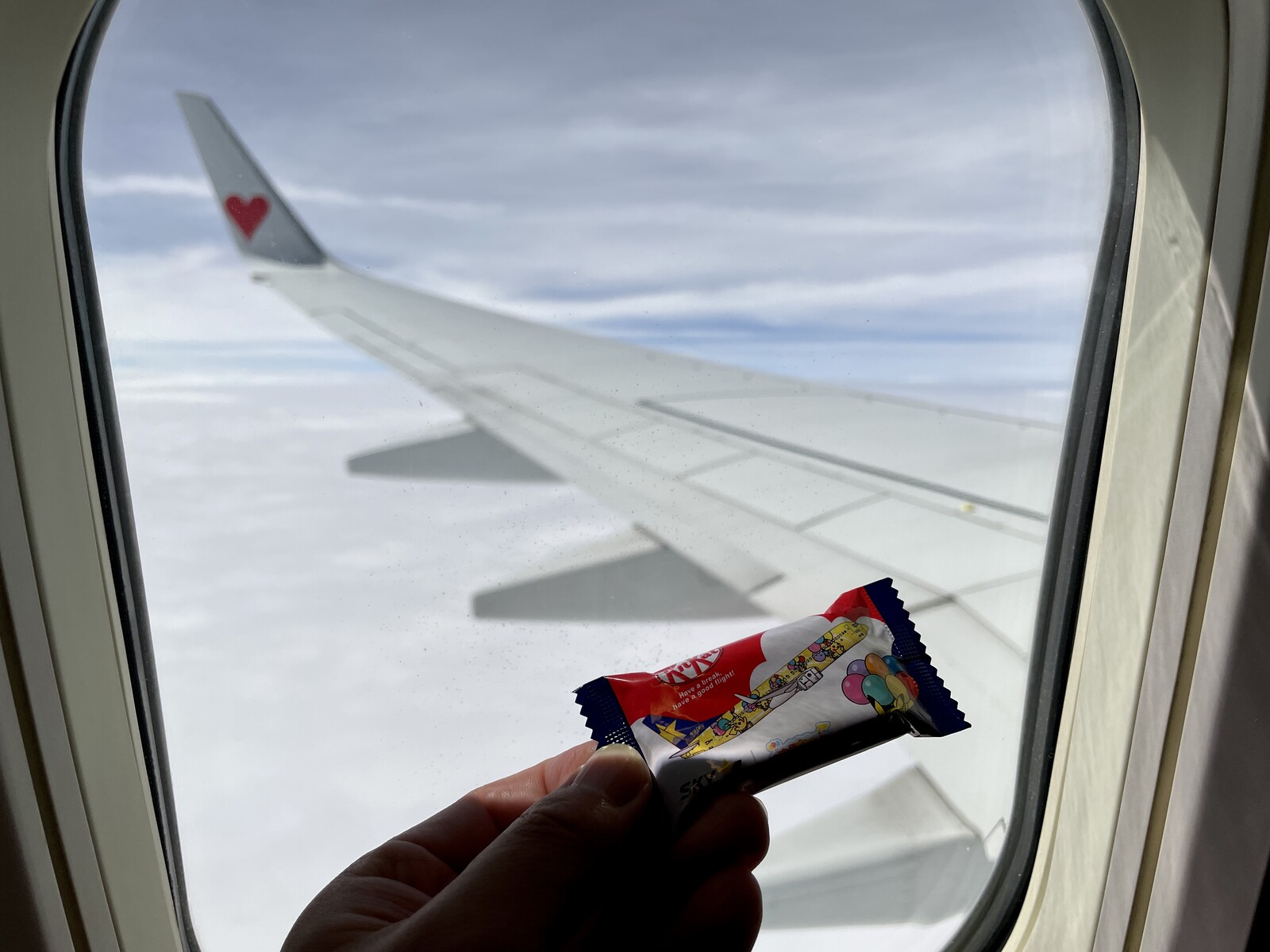 飛行機の翼の先にはハートマーク。