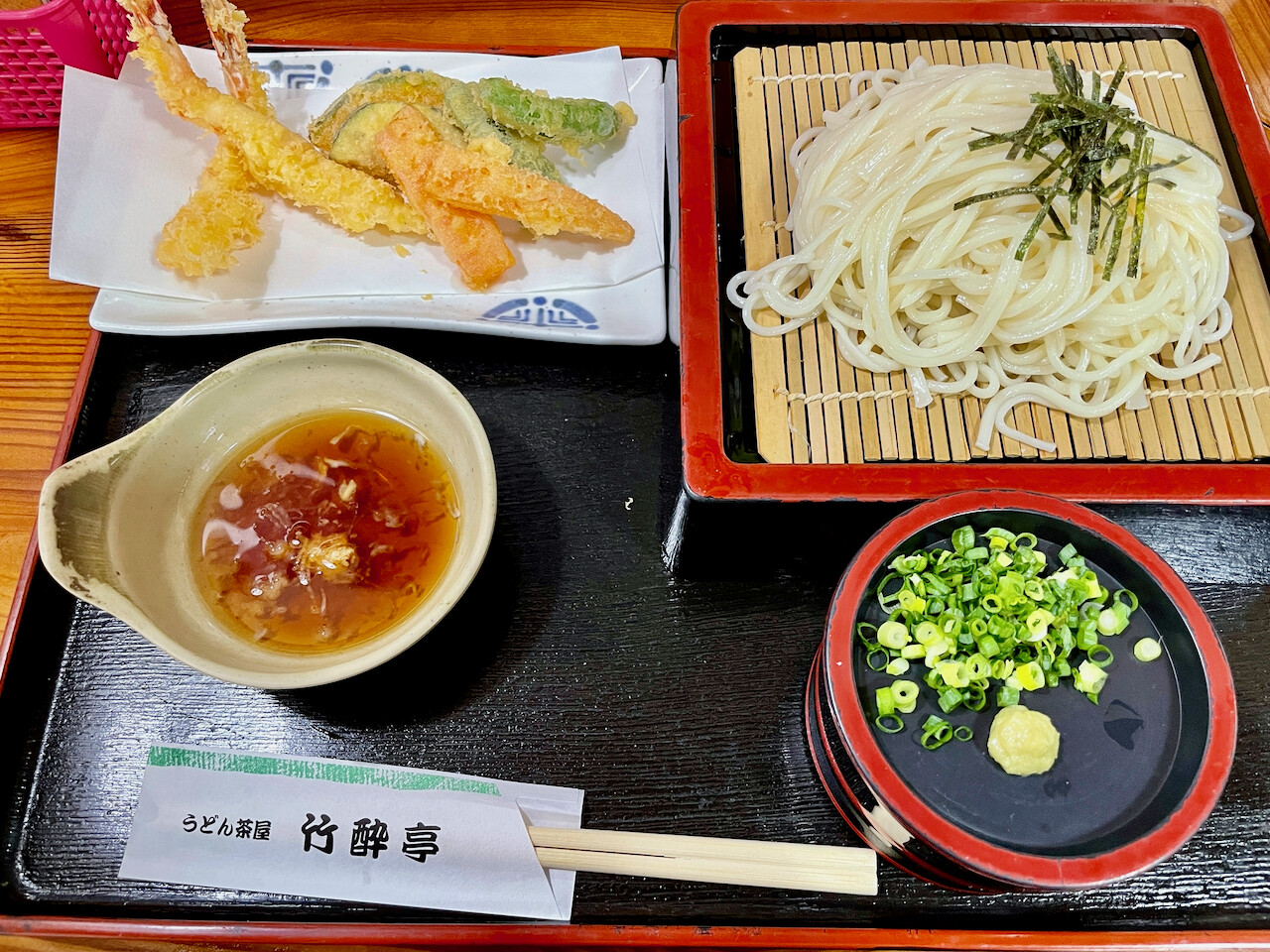 迷わずに天ざるうどんを注文。