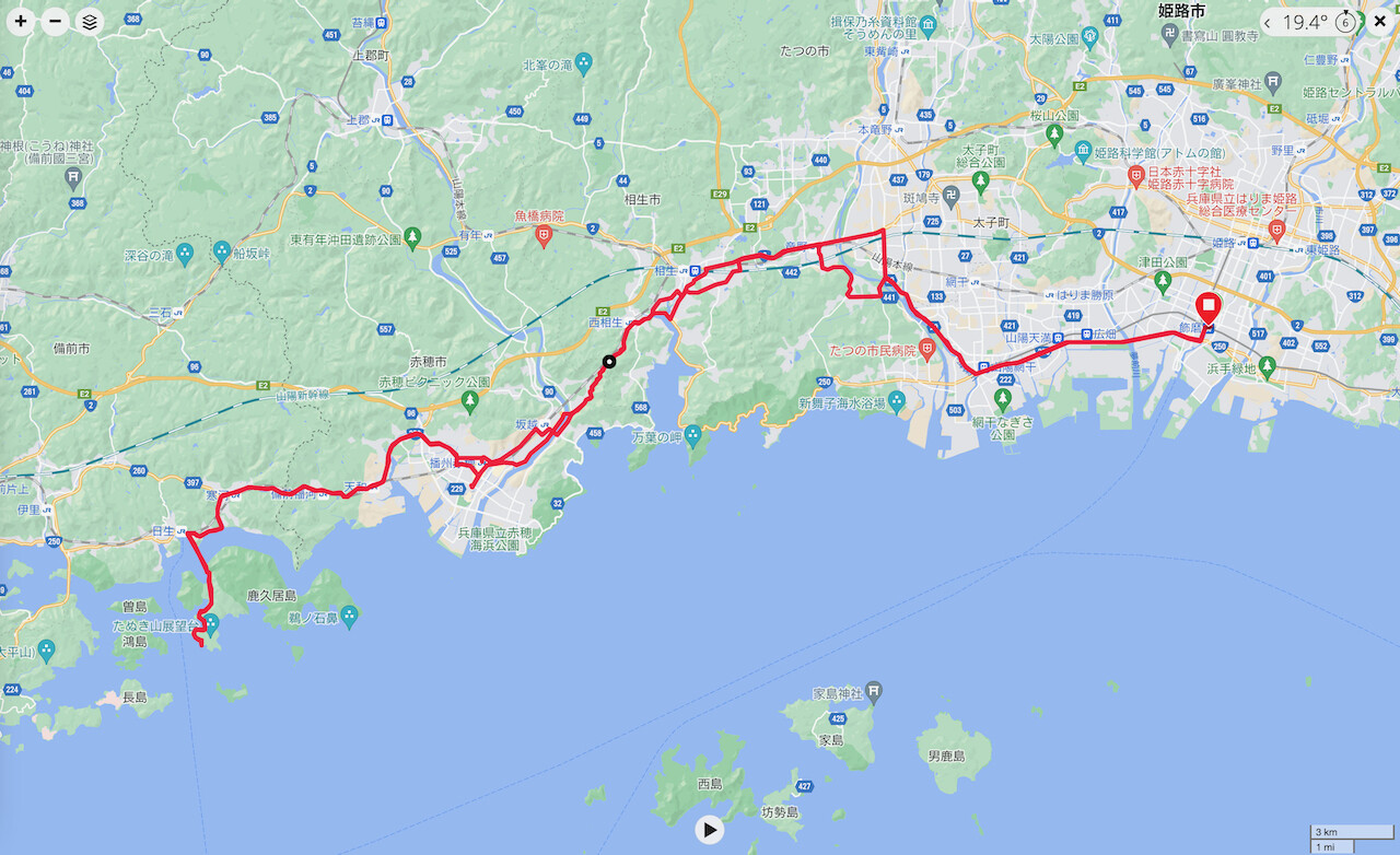 姫路市から50kmほど走って、