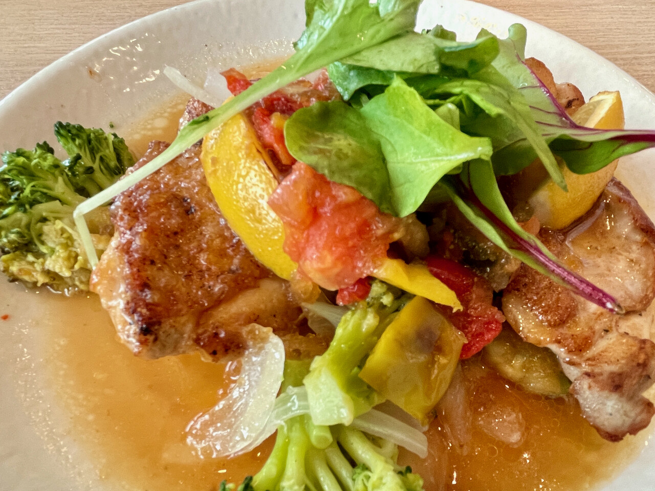 まずは蒸し鶏と野菜のごまにんにくだれ。