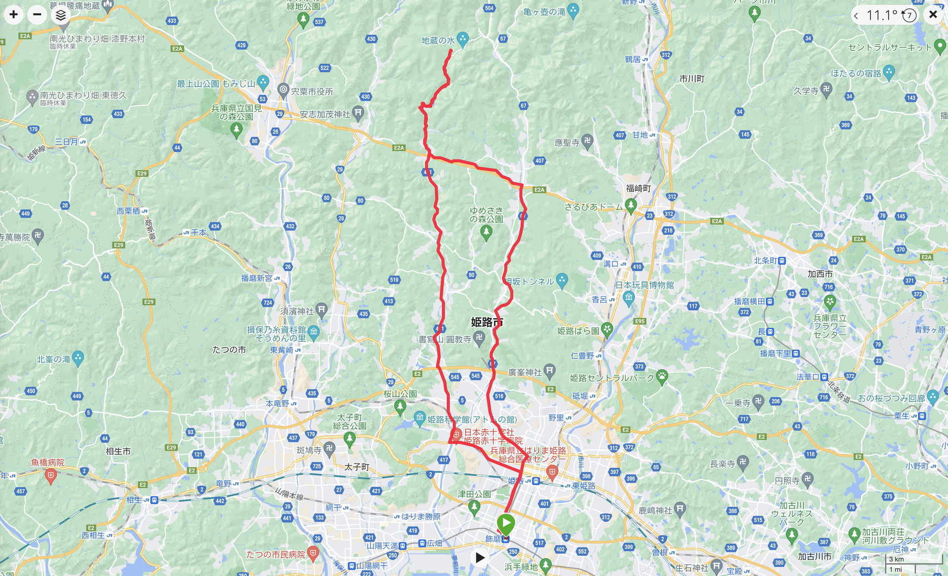 飾磨駅から菅生ダムを向かうという