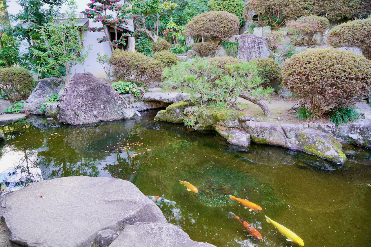 池で泳ぐ鯉を眺めていました。