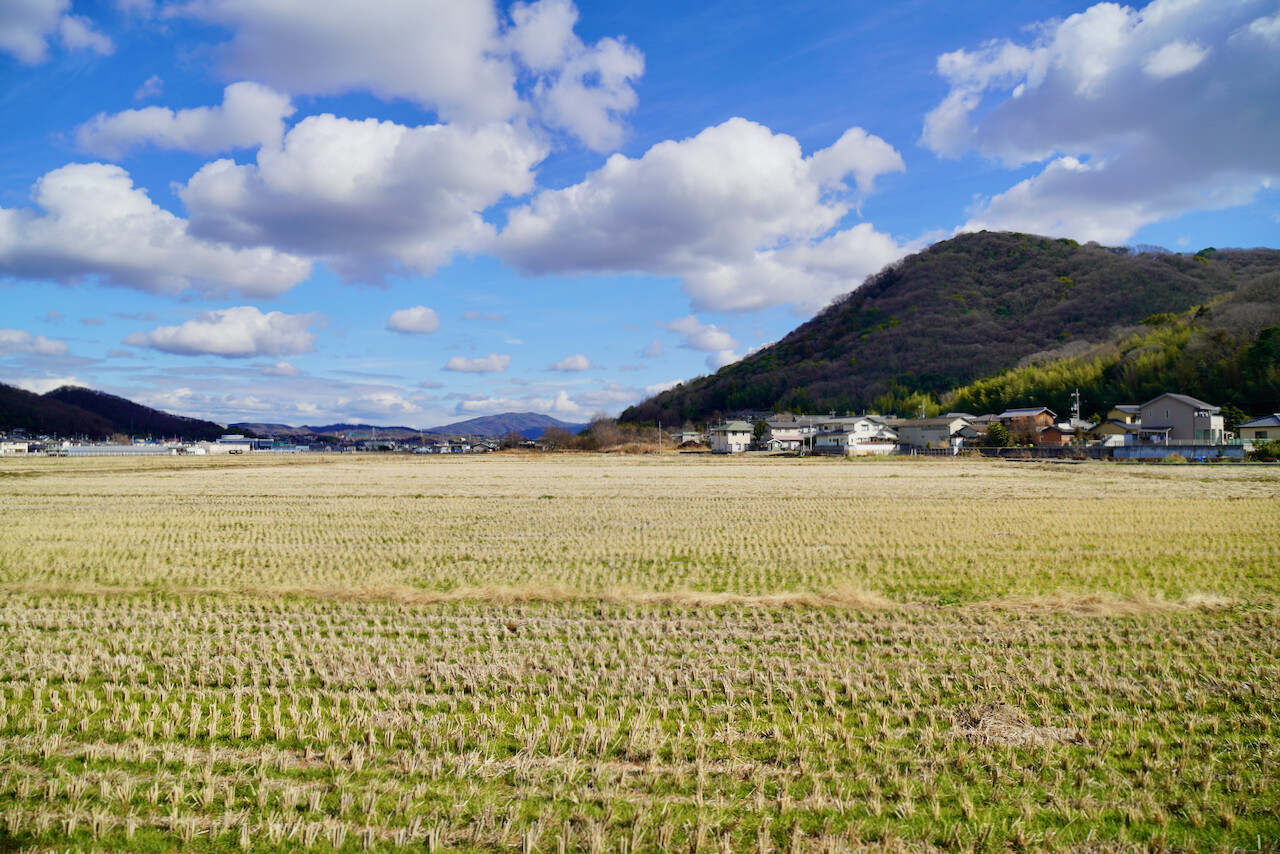 田畑を抜けて吉備津駅方面へ。