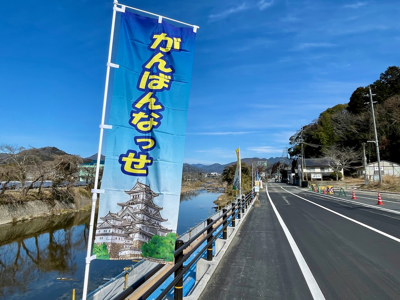 ランナーを激励する旗がたくさん。
