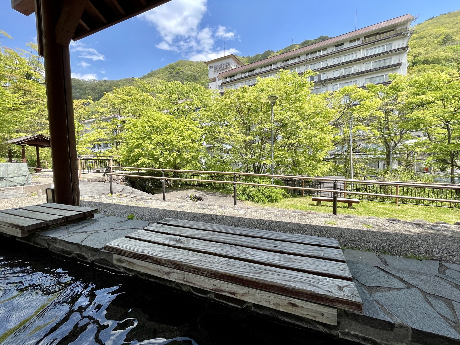 新緑を眺めながらゆっくり足湯とは