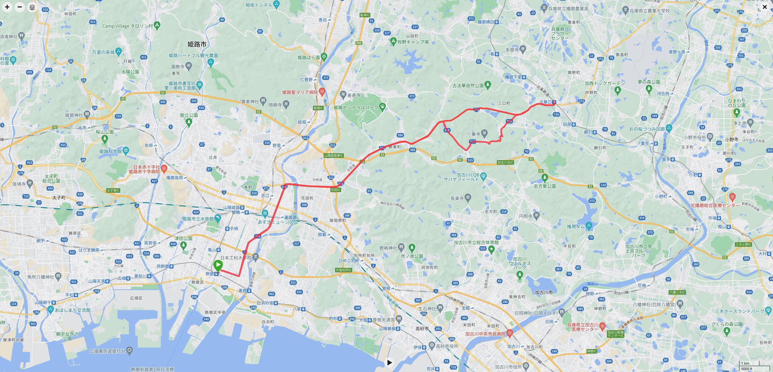 加西市の主要スポットの多くには