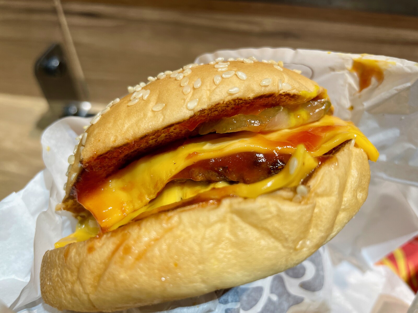 まずはダブルチーズバーガーから。