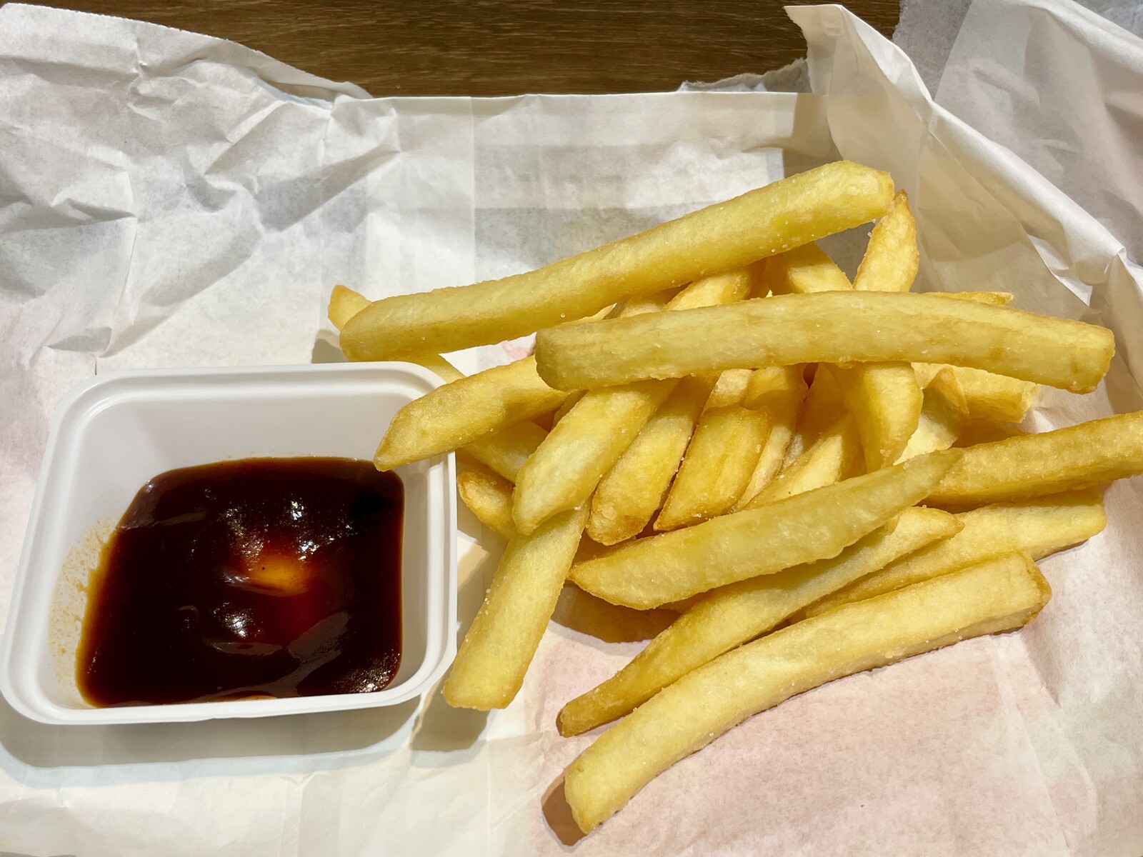 残ったBBQソースはポテトにも。