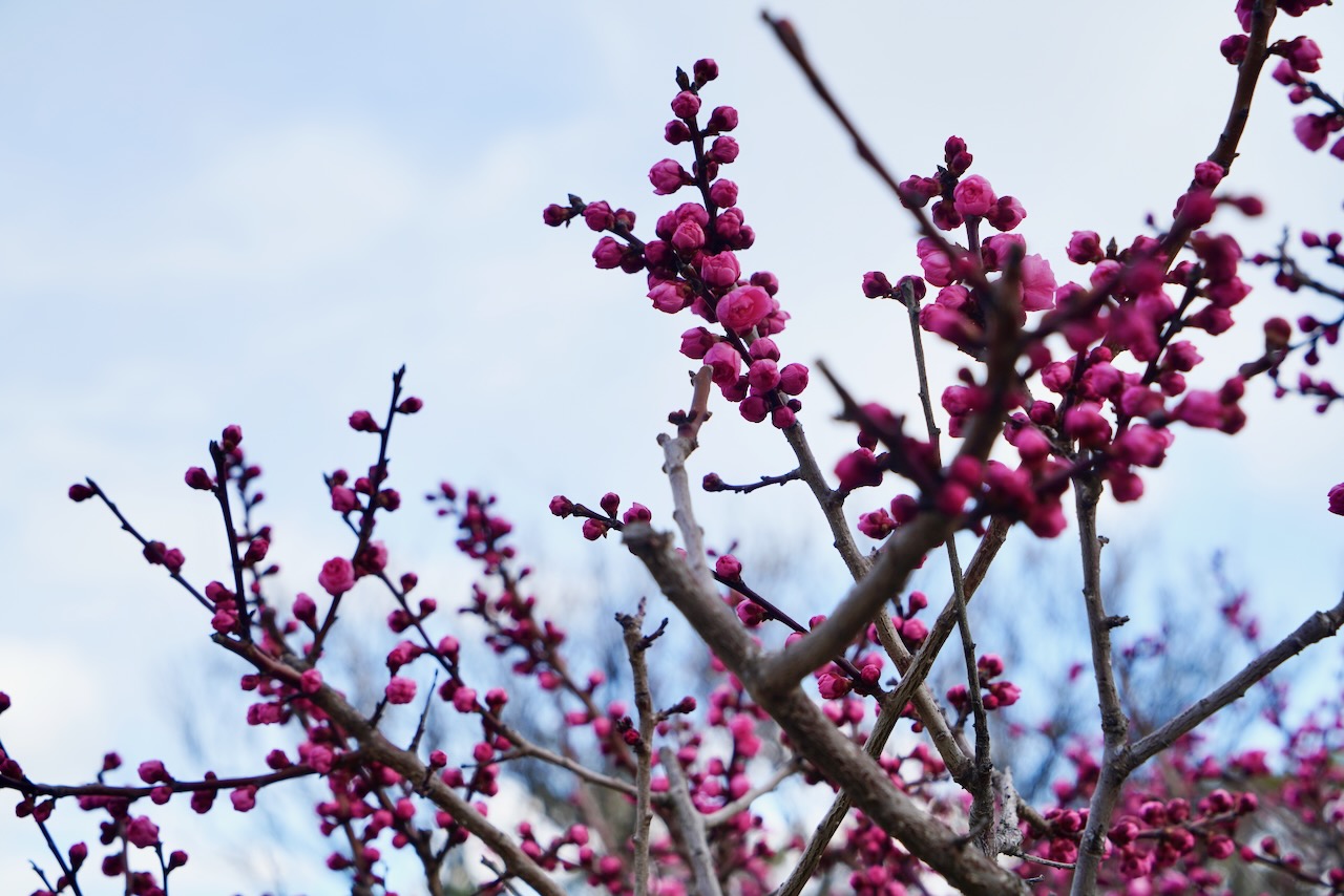 中にはまだ大きな蕾の梅も。