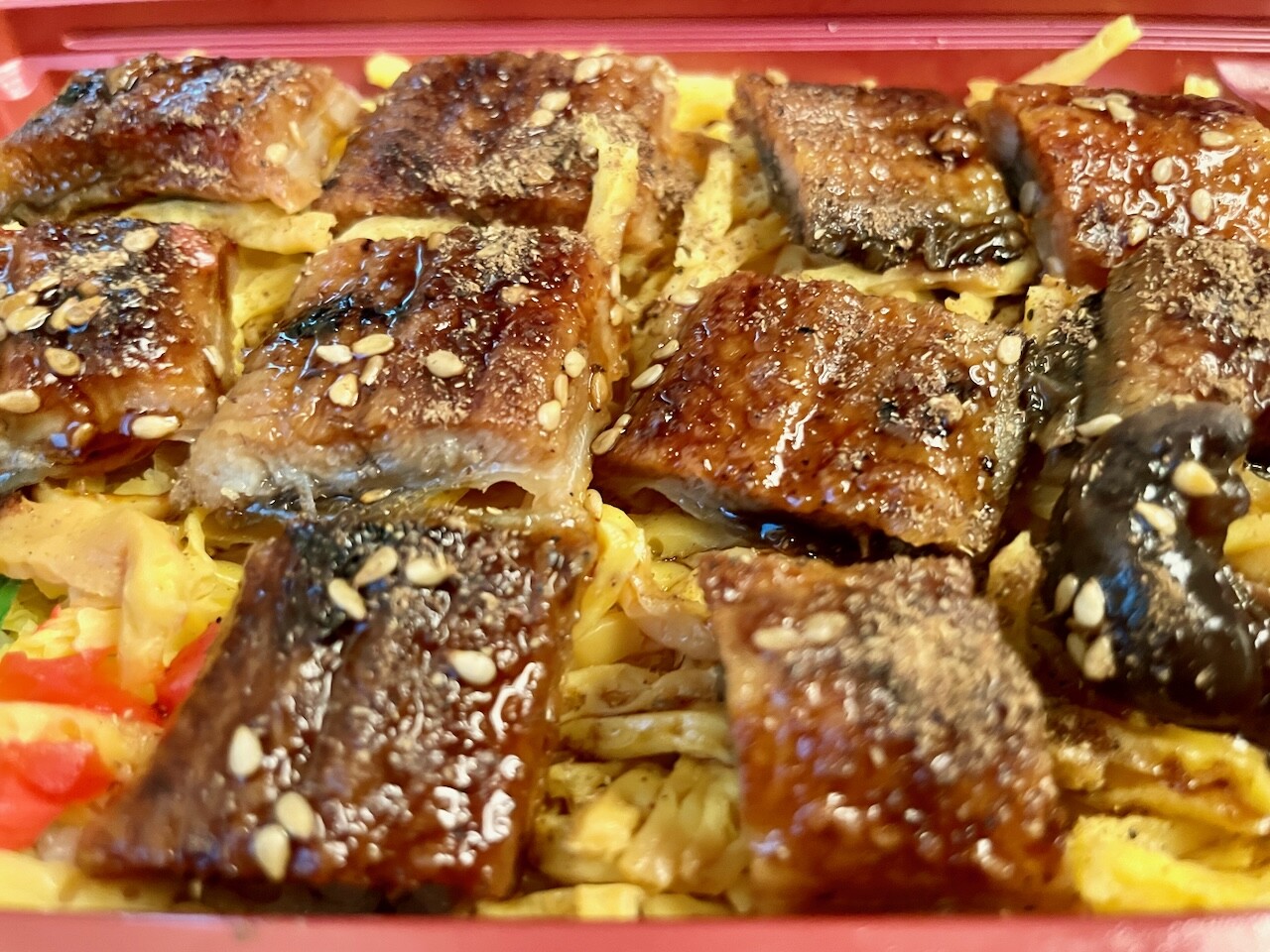 錦糸玉子の上にうなぎが並んでいて、