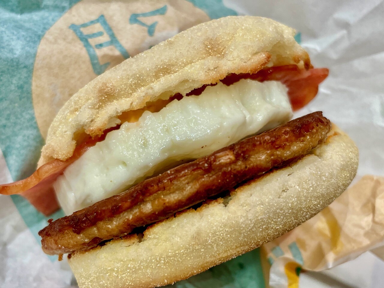 厚みのある玉子と、ソーセージパティ、