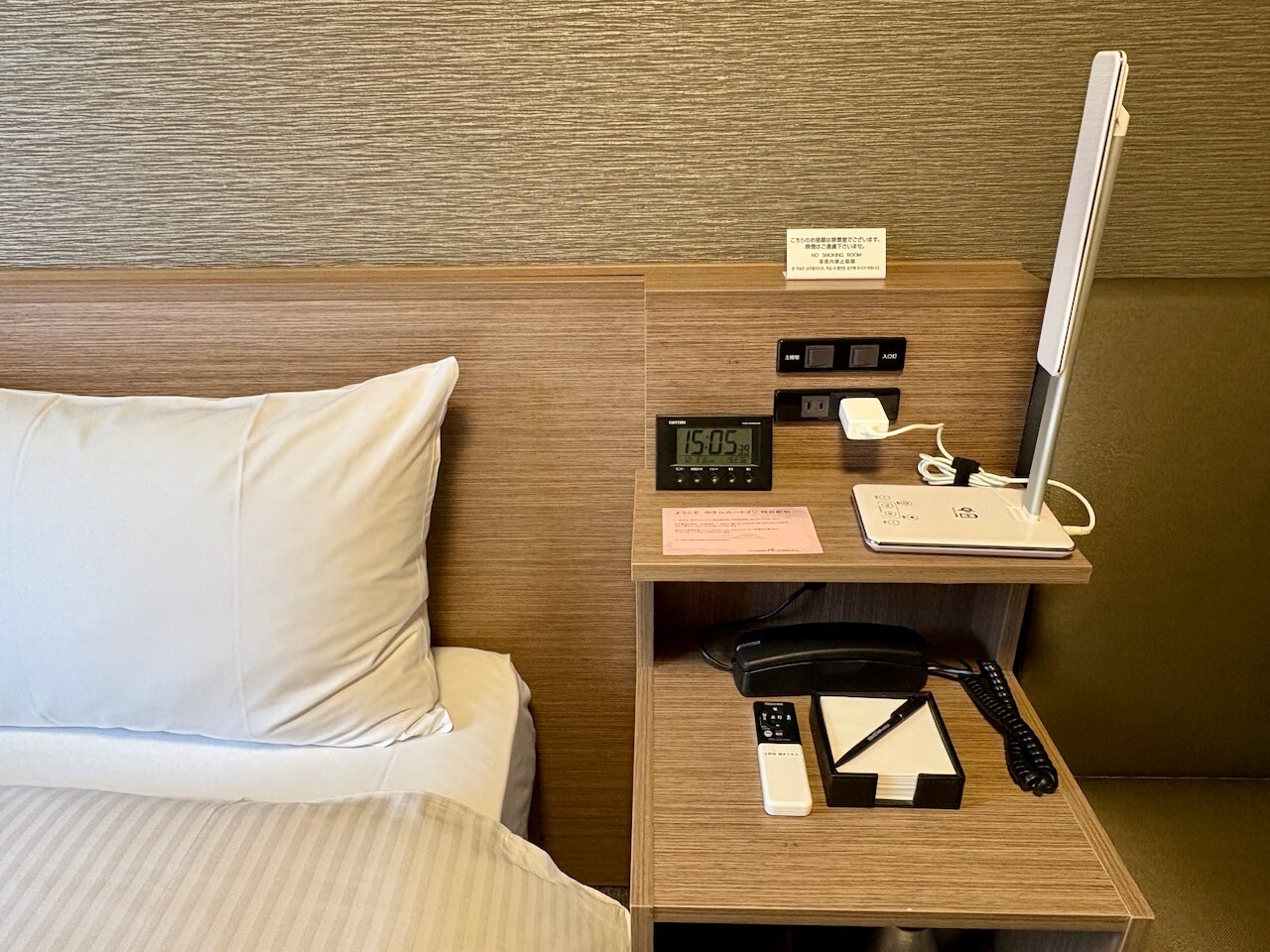 枕元にはビジホ定番のコンセントや